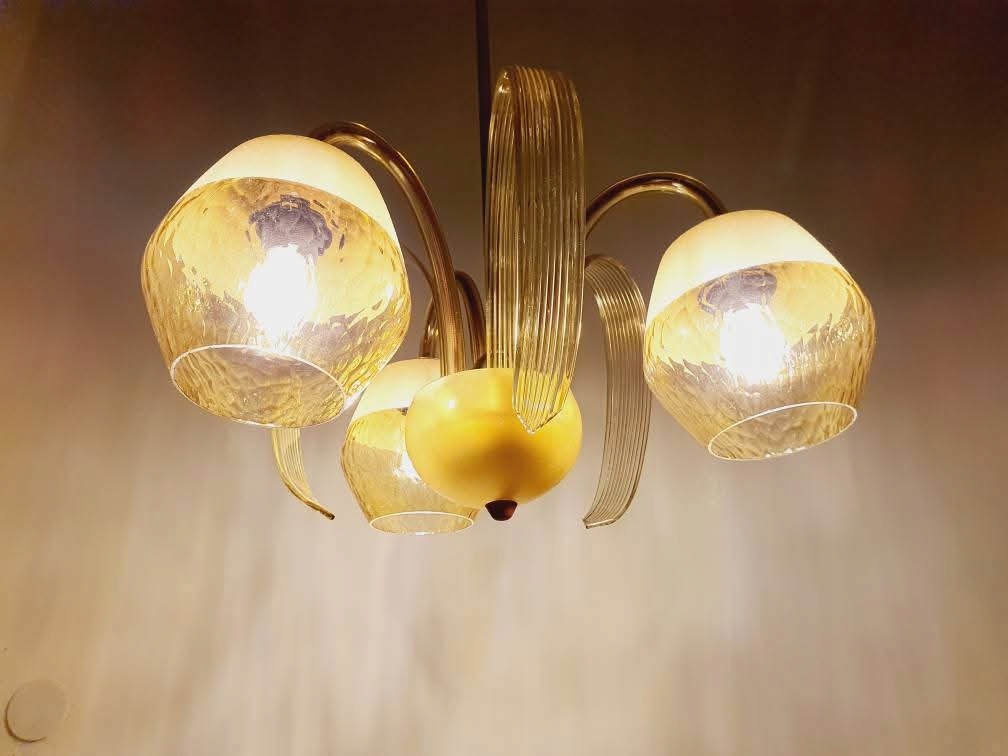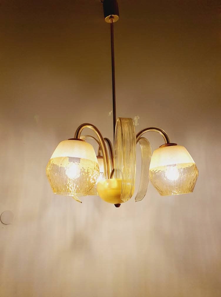 Стеклянная люстра лампа Деко Чехословакия