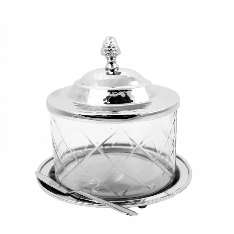 МАСЛЕНКА СТЕКЛЯННАЯ на никелированном подносе, с серебряной крышкой и ножом