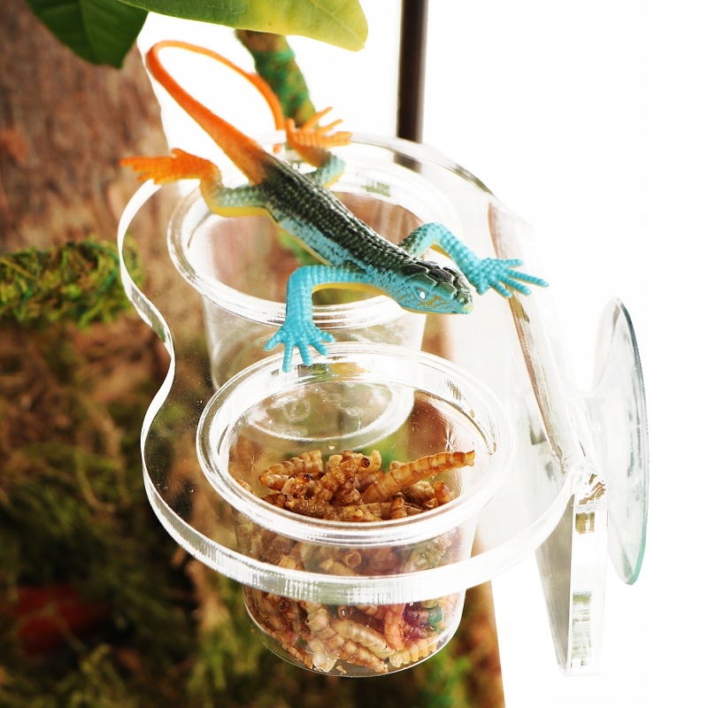 Присоски, акриловый корпус и пластиковые миски. Все прозрачнее стекла. Миска становится невидимой в террариуме, чтобы не нарушать его естественный декор.