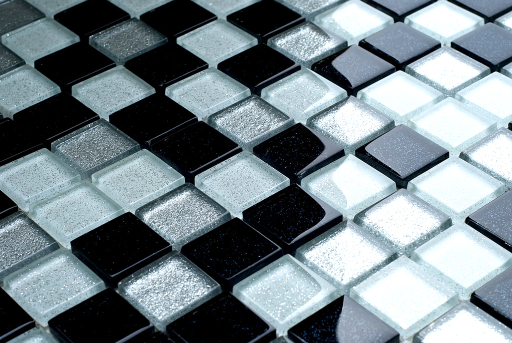 Мозаика в серебра, черно -белом с частицами мерцающего блеска