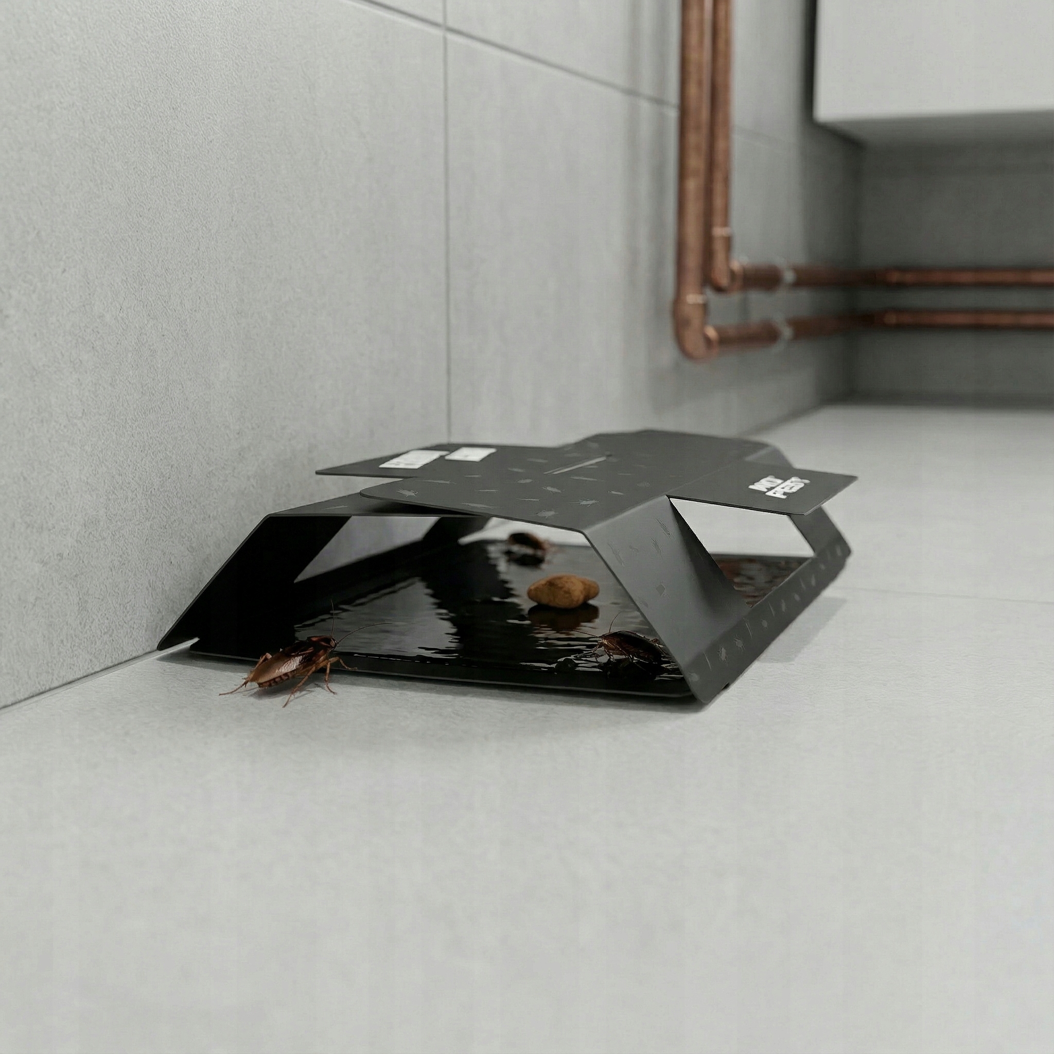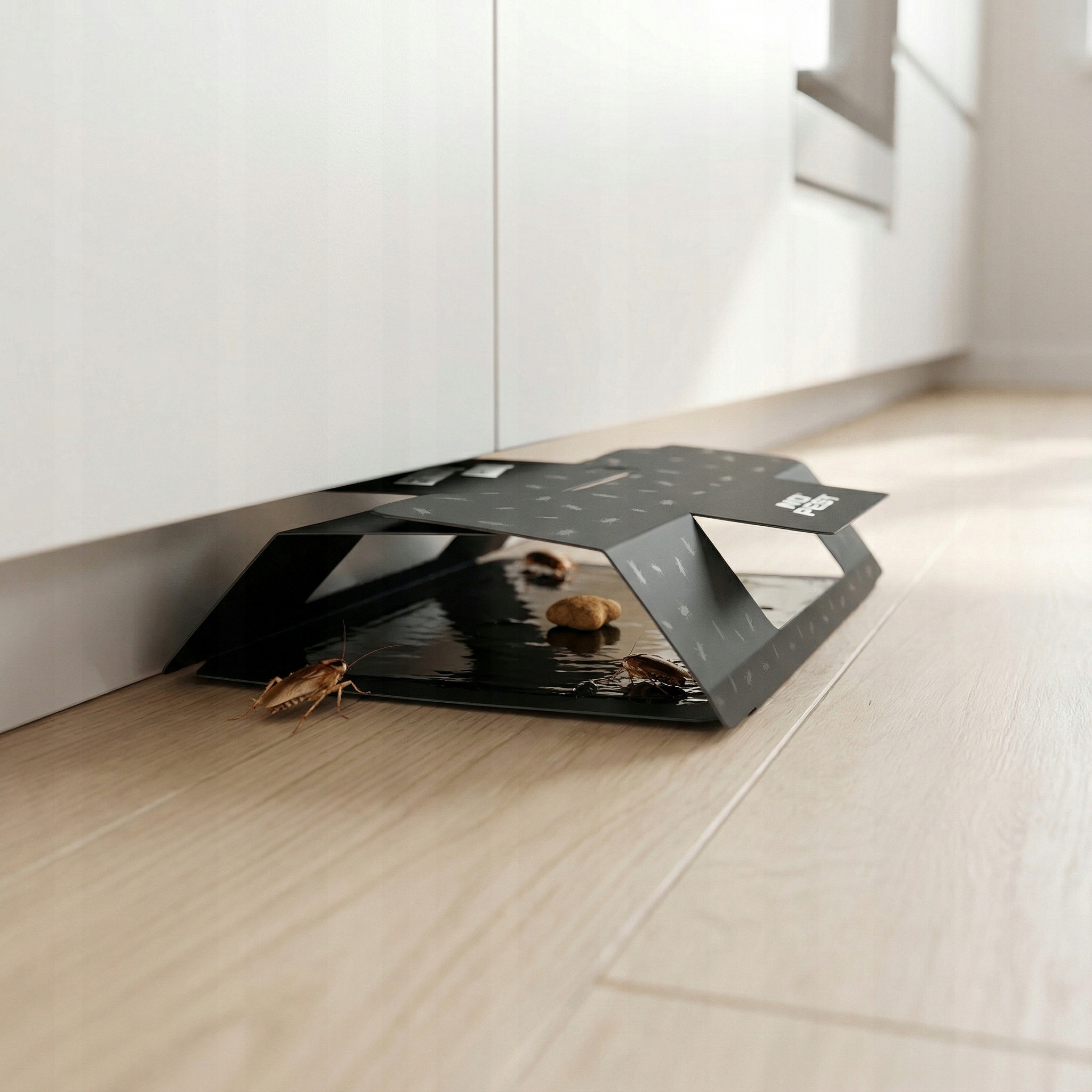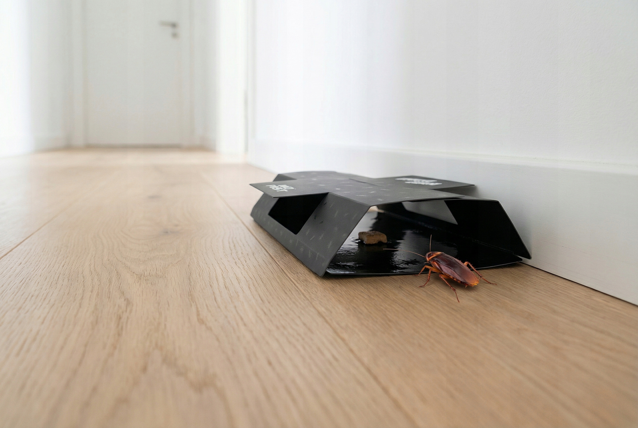 Ловушка не содержит никаких аттрактантов - при желании в нее можно поместить простую приманку, например сухой корм или пищевые крошки. Попав внутрь, насекомое иммобилизуется на клейкой поверхности, что позволяет оценить масштаб проблемы.