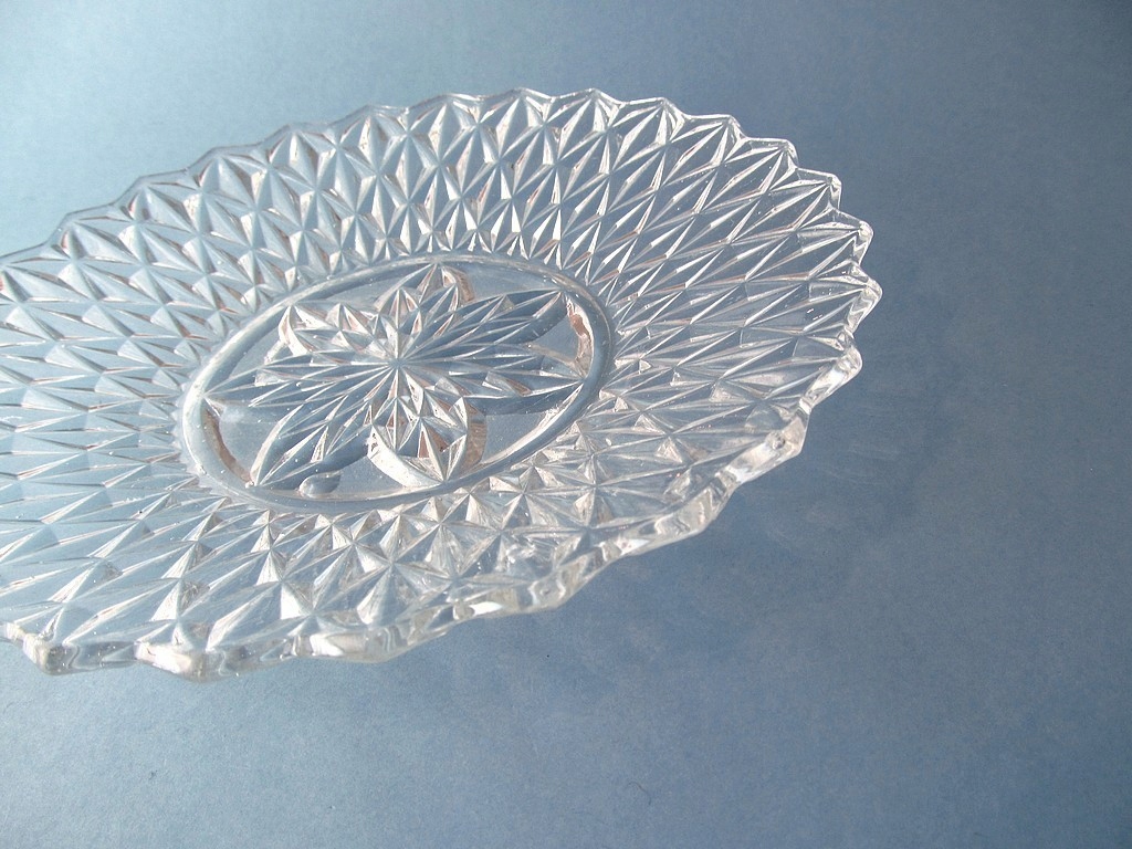 Здравствуйте, дамы и господа......предмет продажи - оригинальная, старинная тарелка из чистого прессованного стекла......около 1900-1920 годов...диаметром 23 см, очень хорошее состояние, несколько незначительных вмятин на основании тарелки, которые, однако, почти не заметны и абсолютно не дисквалифицируют такую старинную вещь.........красивый антиквариат и настоящее украшение любого стильного интерьера!........НАСТОЯТЕЛЬНО РЕКОМЕНДУЮ!!!!