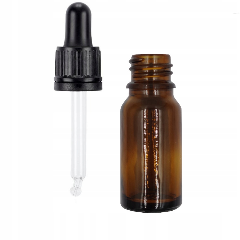 Флакон из коричневого стекла 10 мл + стеклянная пипетка (черная капельница)