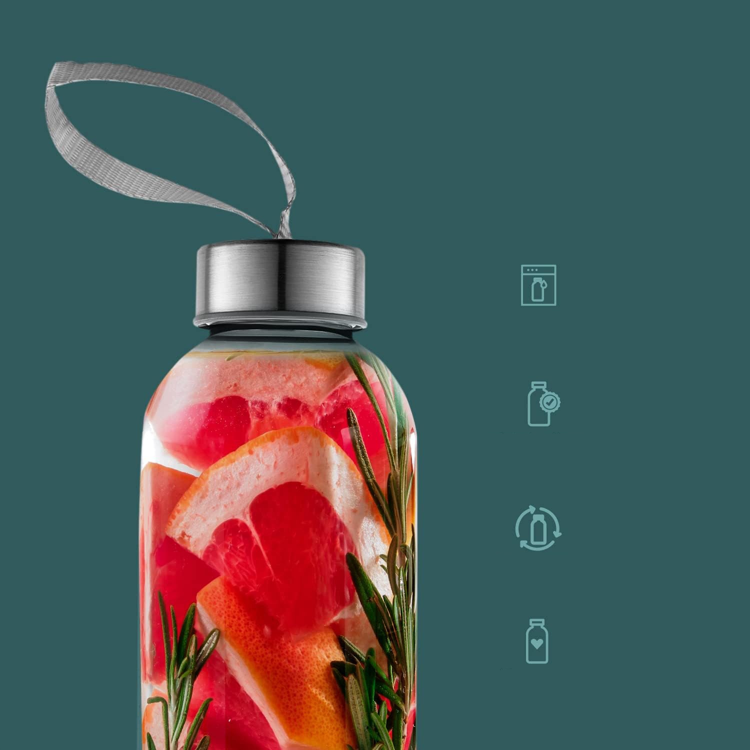 ► 【【 разработан для транспортировки】 Прикрепляем ремень на крышку и бутылку рукава для сока, чтобы вы могли с комфортом носить стеклянную бутылку. Его стройный профиль подходит для большинства автомобильных держателей для чашек, так что вы можете выпить по дороге.