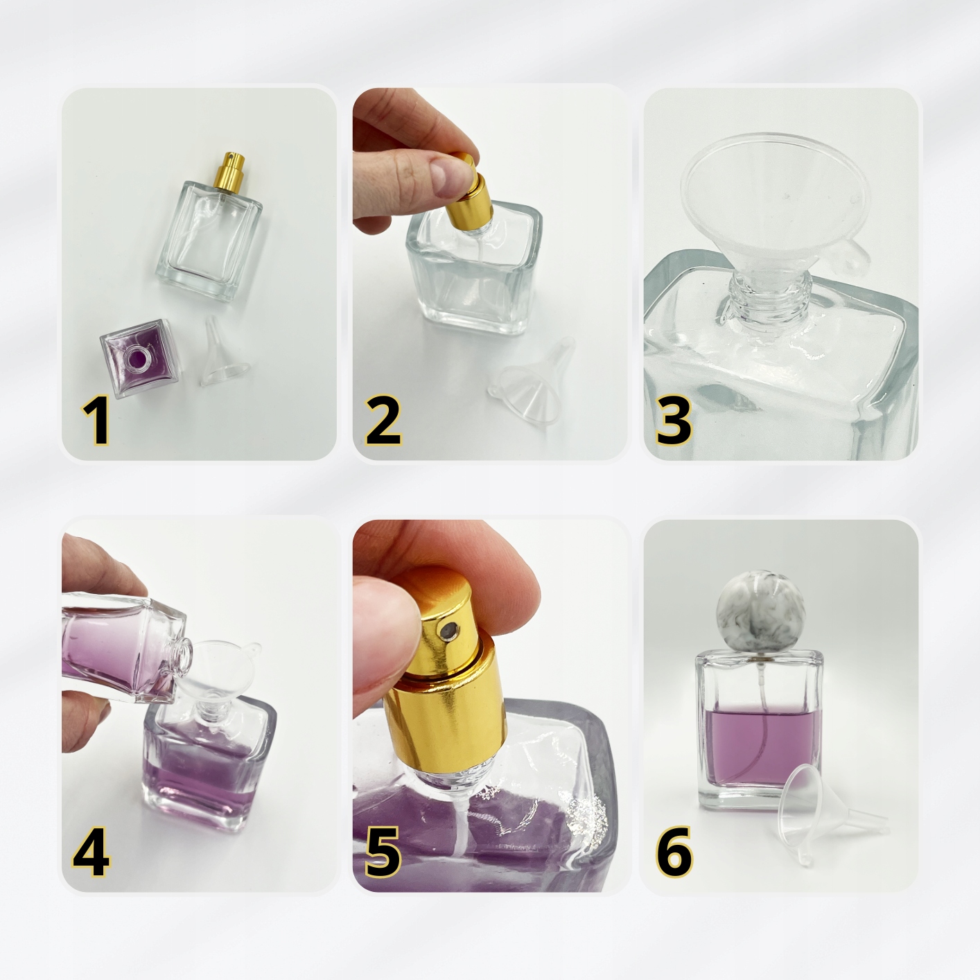 4⃣ Осторожно вылейте духи в бутылку.
