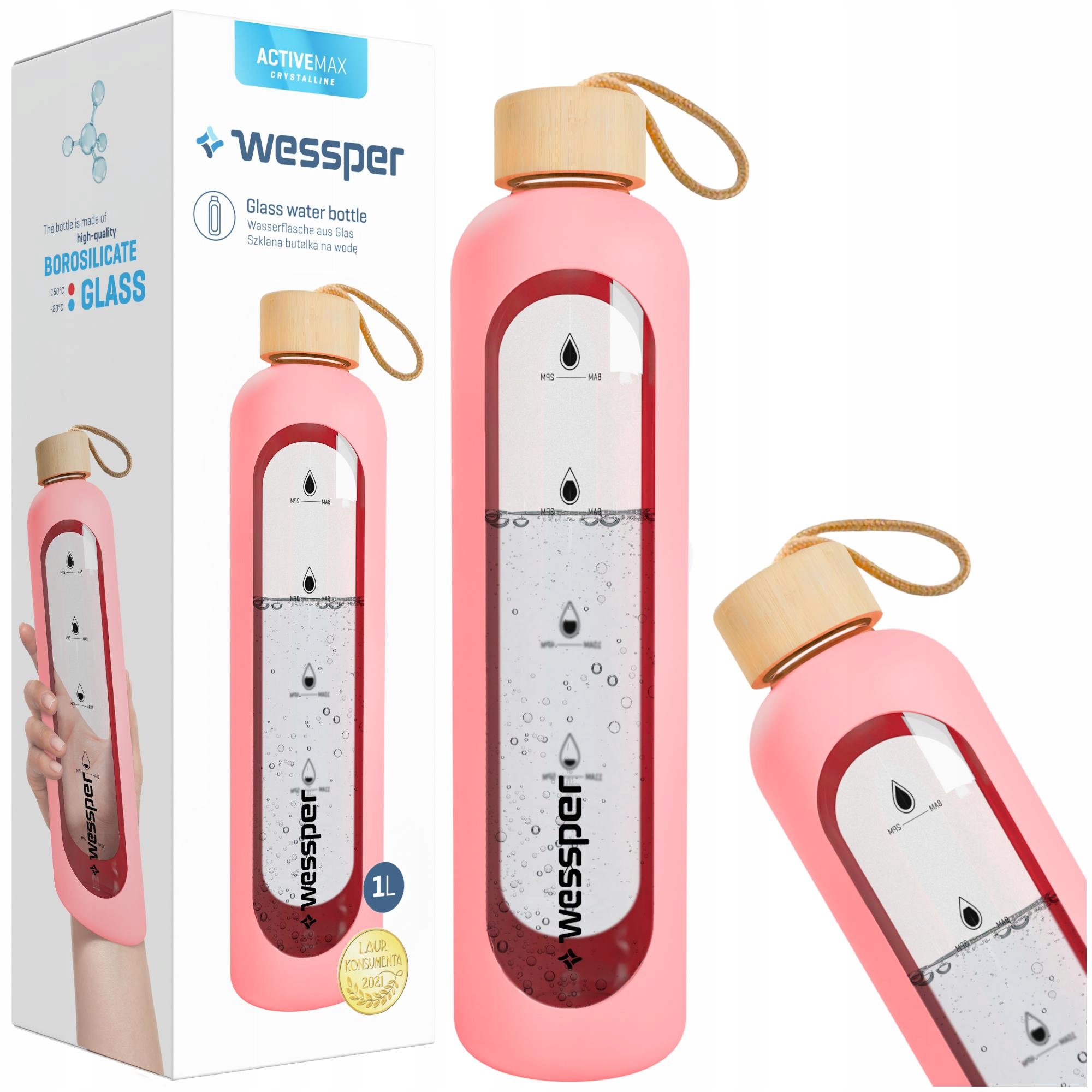 Мотивационная бутылка Wessper ActiveMax Crystalline подходит не только для воды, но и для других напитков. Высококачественное боросиликатное стекло обеспечивает устойчивость к высоким температурам.