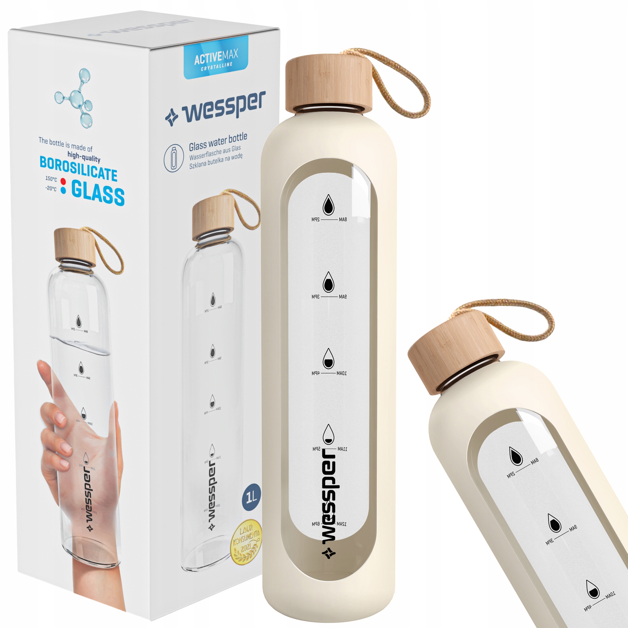✅ Стеклянная бутылка Wessper ActiveMax 1000мл с бамбуковой крышкой