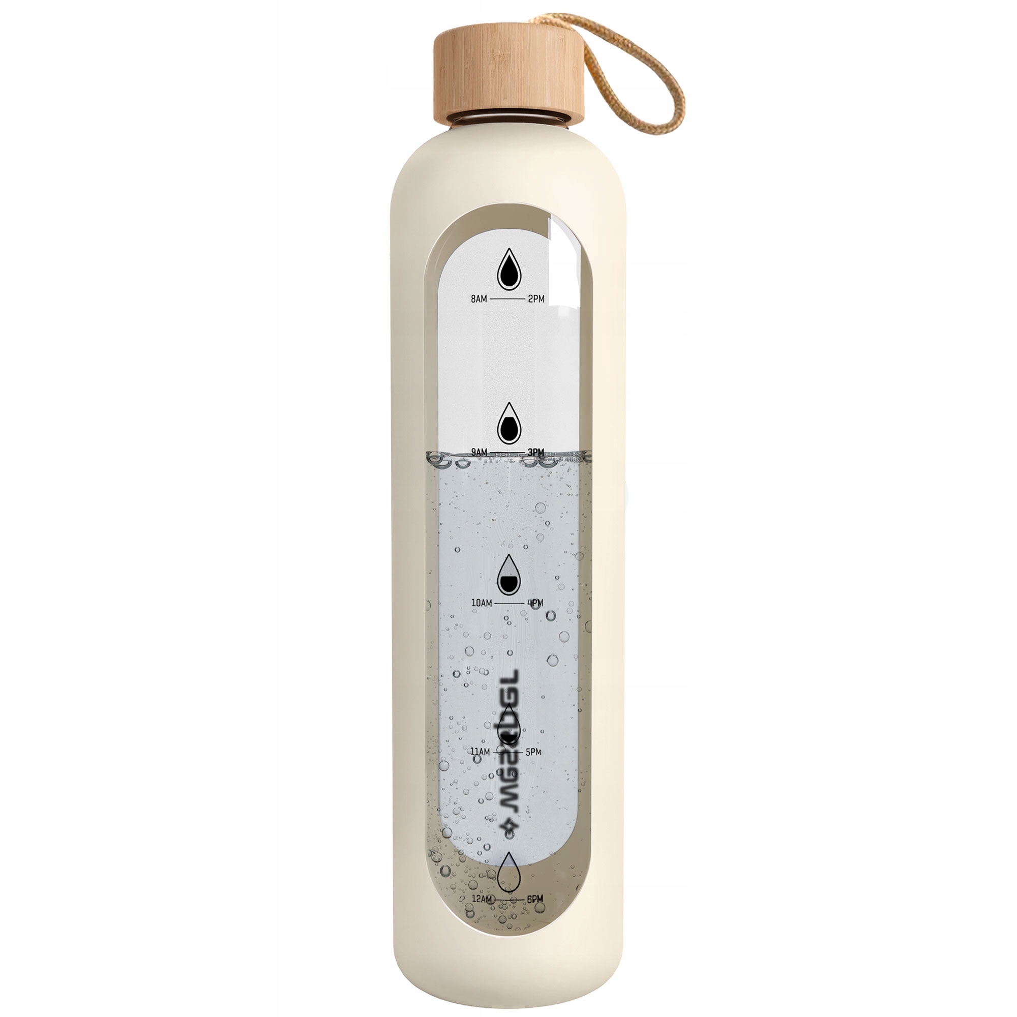 СКЛЯНА ПЛЯШКА ДЛЯ ВОДИ З КОРПУСОМ 1000мл БЕЖЕВА ПЛЯШКА ДЛЯ ВОДИ