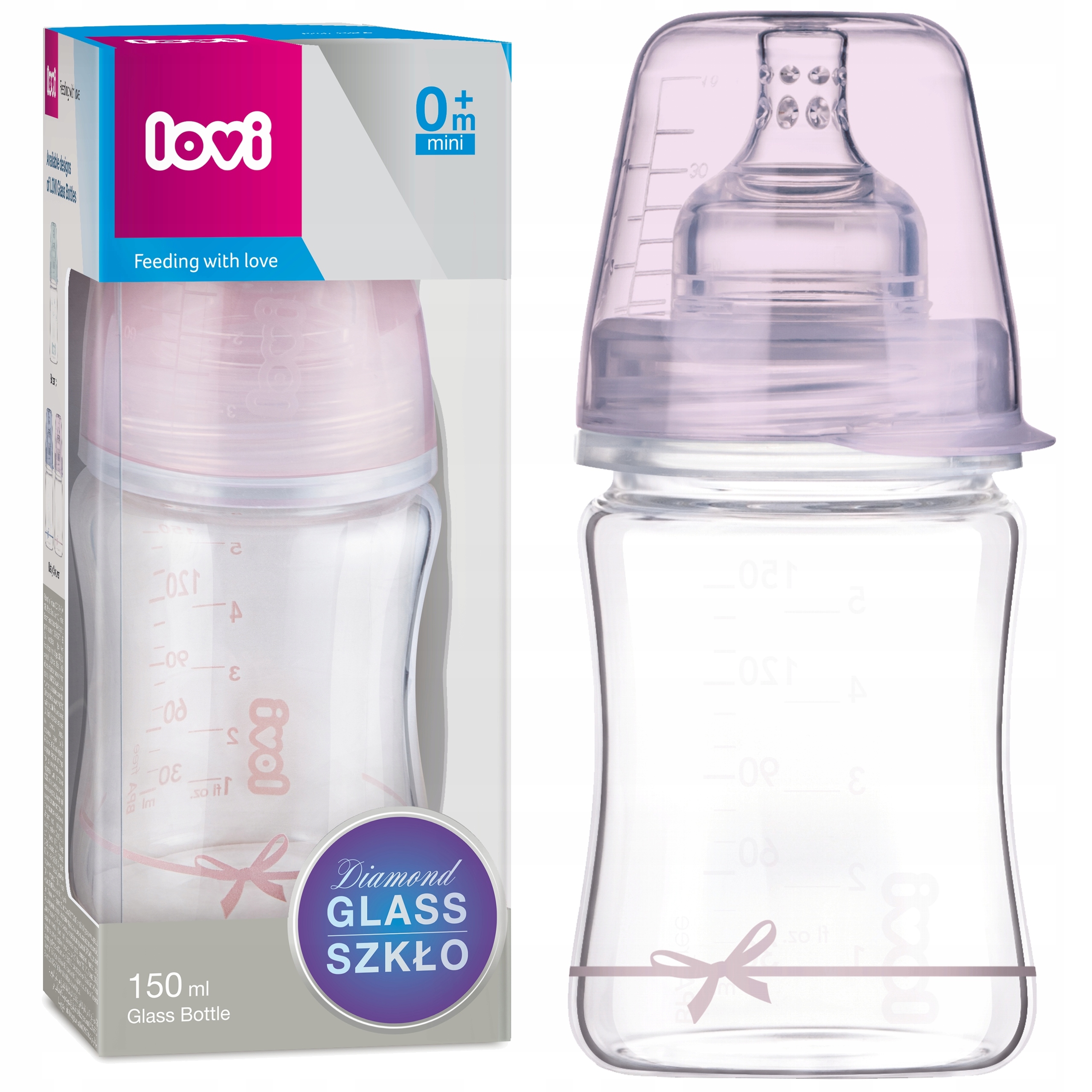 Стеклянная бутылочка Lovi Diamond 150 мл Baby Shower розовая мини-соска 0m+GIRL