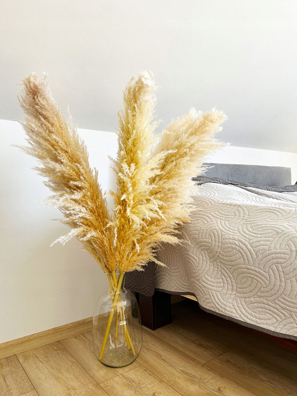 Ваза имеет узкое входное отверстие, что делает ее идеальным решением для пампасной травы. В него также можно удачно налить воду и добавить живые цветы.
