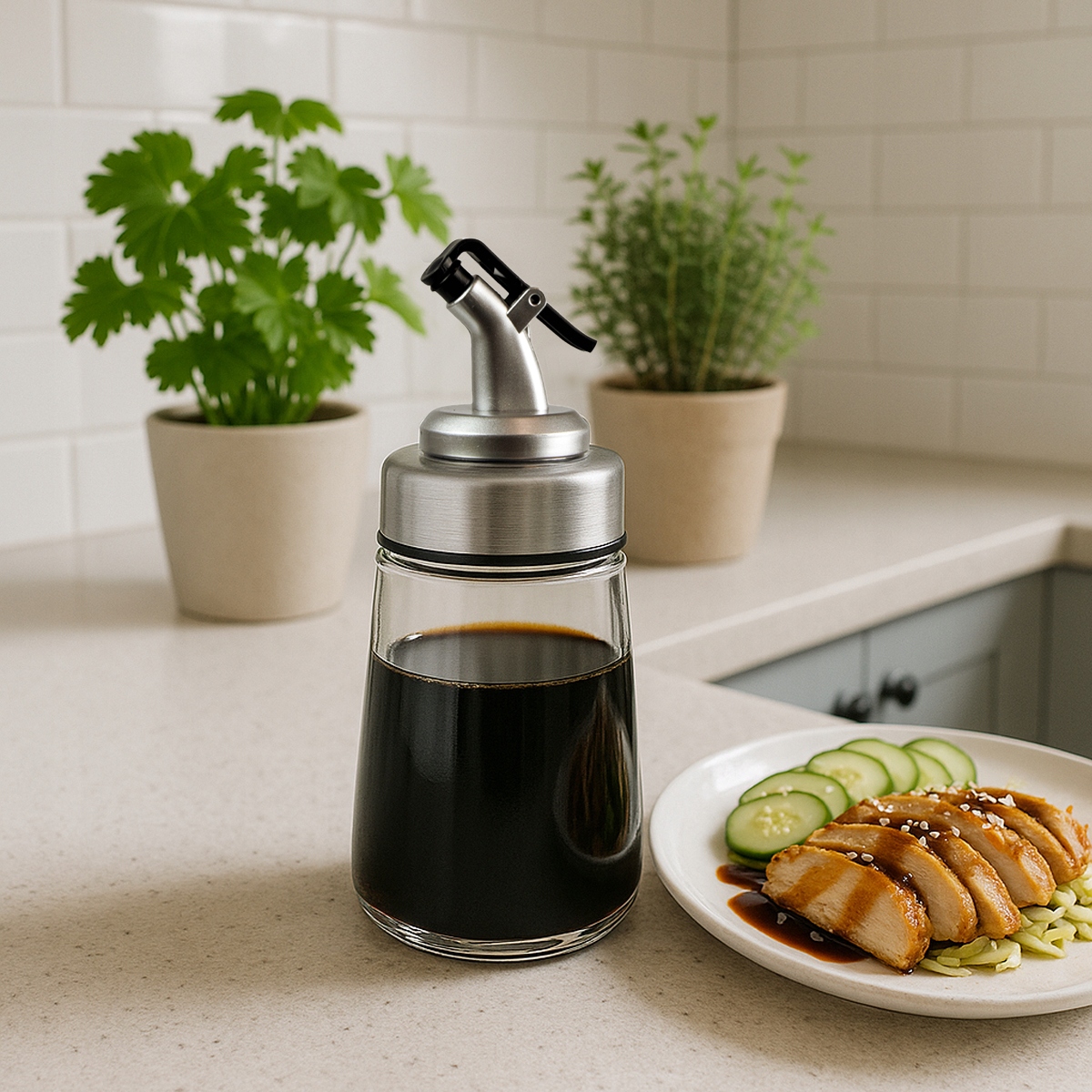 Стеклянная бутылка с дозатором Tinker 200 мл для соусов оливкового масла уксуса h1>