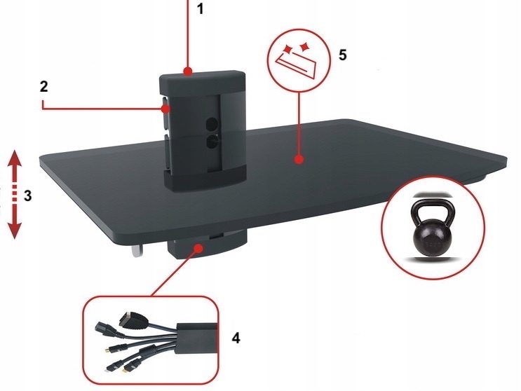 Полка регулируется по высоте, благодаря чему ее можно идеально подогнать к телевизору