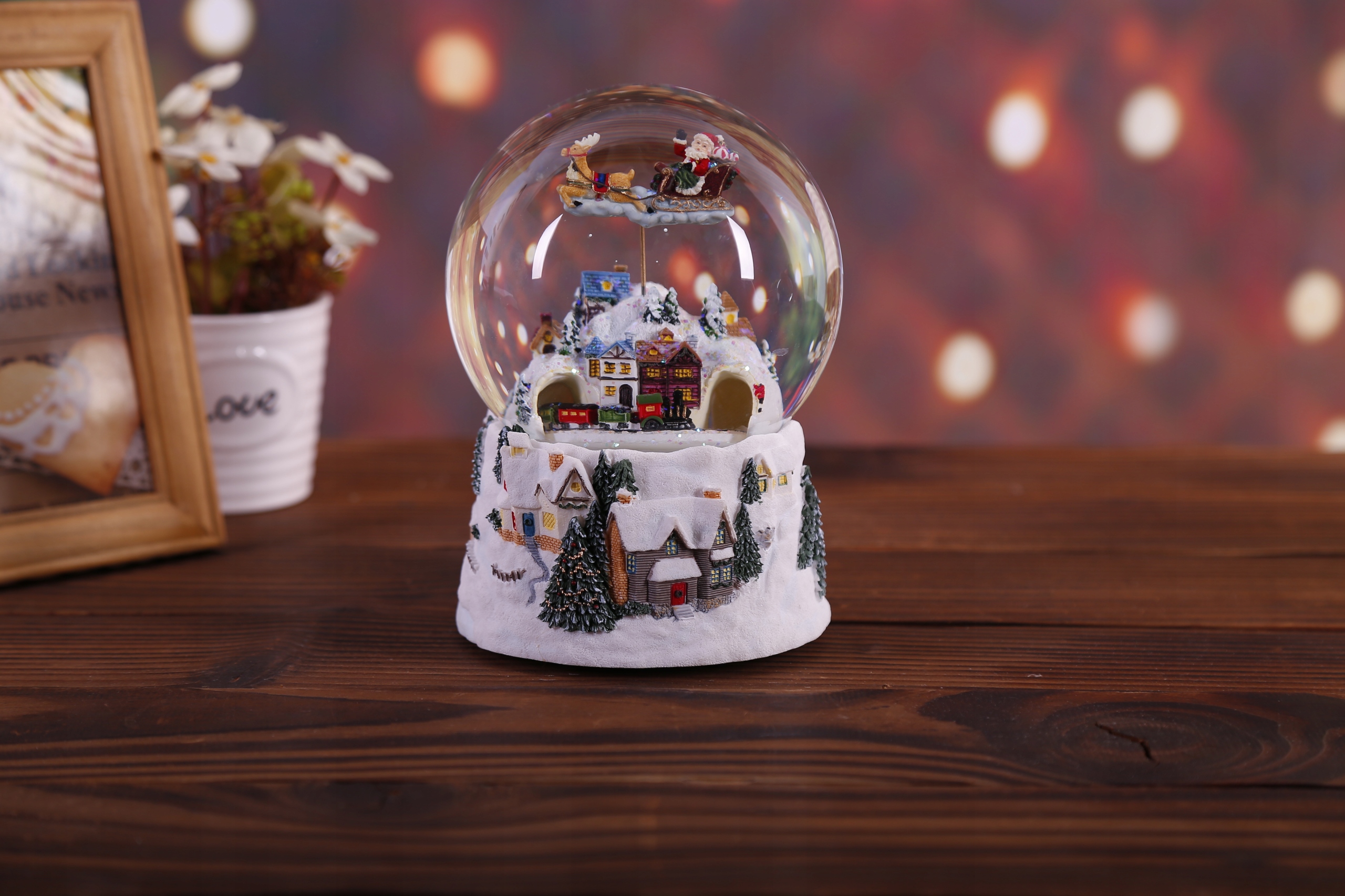 Музыкальный водный шар диаметром 120 мм с вращающимся Санта-Клаусом на санях