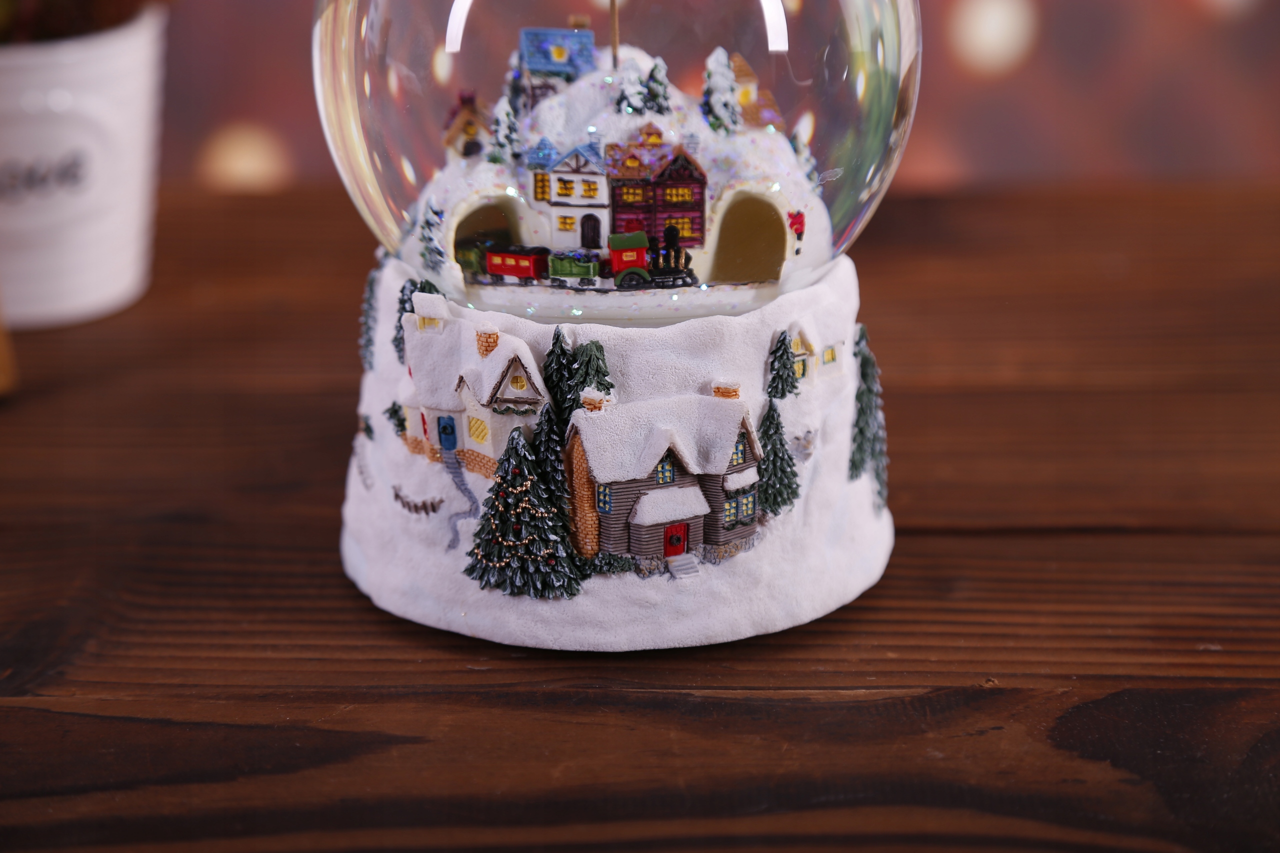 СТЕКЛЯННАЯ РОЖДЕСТВЕНСКАЯ МУЗЫКАЛЬНАЯ ШКАЛКА СНЕЖНЫЙ ГЛОБЛ С ВРАЩАЮЩИМСЯ ПОЕЗДОМ И ДЕДОМ КЛАУСОМ