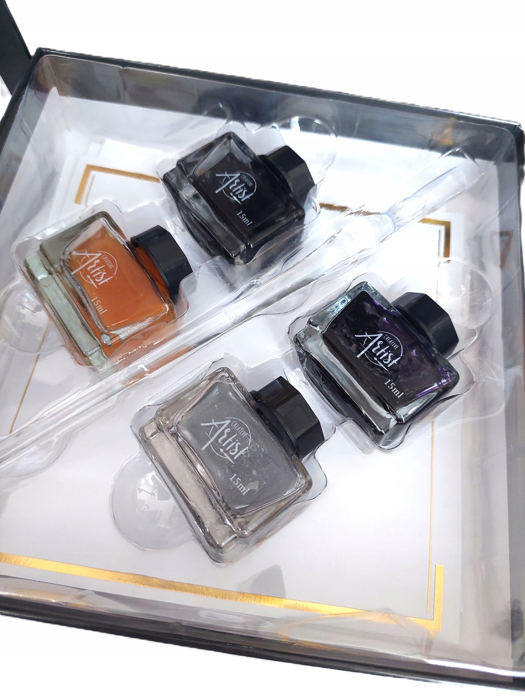 ✅ 4 цвета чернил во флаконах по 15мл: черный, фиолетовый, золотой, серебряный