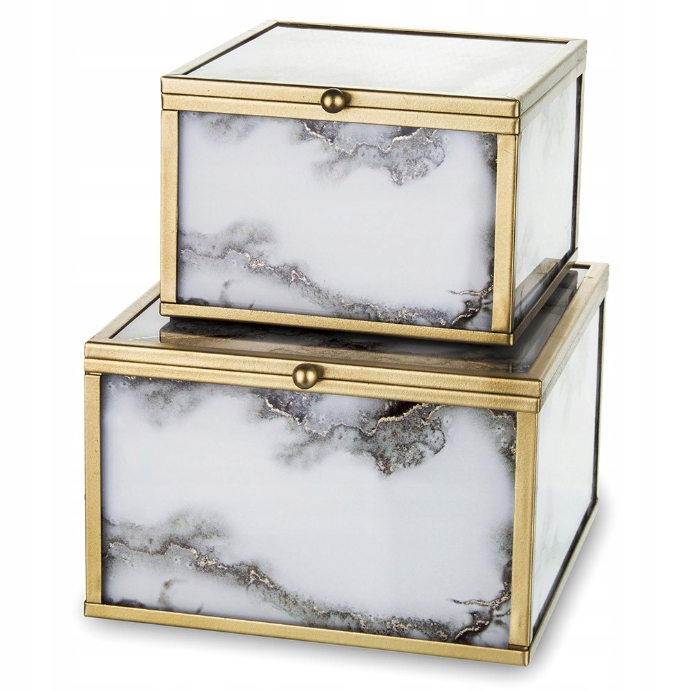 СТЕКЛЯННАЯ ШКАТУЛКА ДЛЯ ЮВЕЛИРНЫХ УКРАШЕНИЙ, 2 шт. БЕЛОЕ ЗОЛОТО