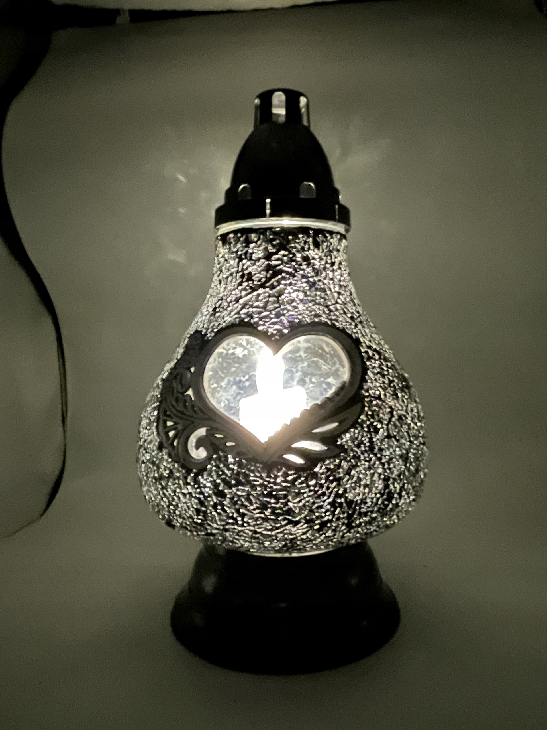 Стеклянная свеча Кайри Витраж Мозаики Фонари Декоративное Сердце Серебряное 38 см.