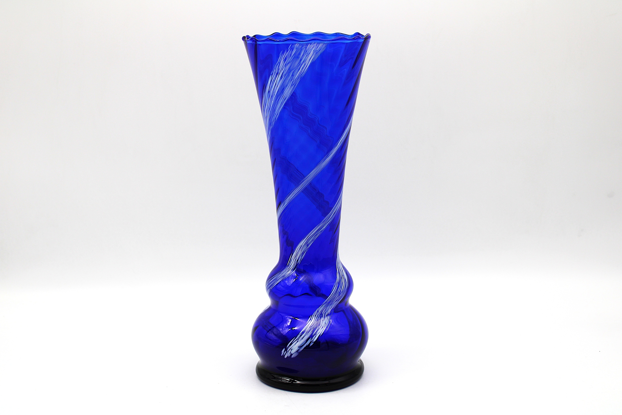 СТЕКЛЯННАЯ ВАЗА КОБАЛЬТОВОГО ЦВЕТА, 1960-1970-е годы, ВСЕ РУЧНАЯ РАБОТА
