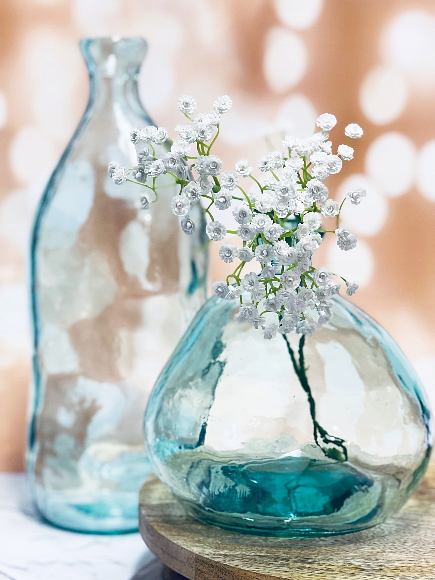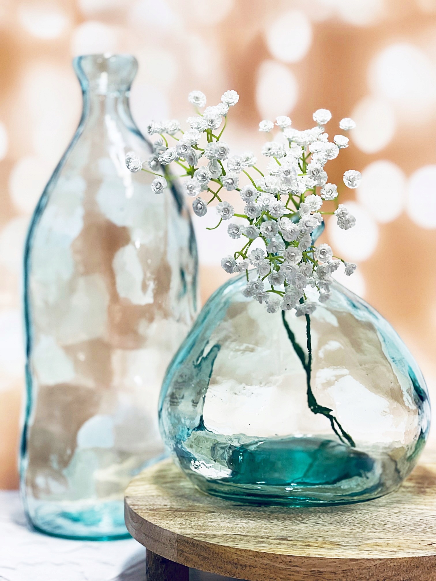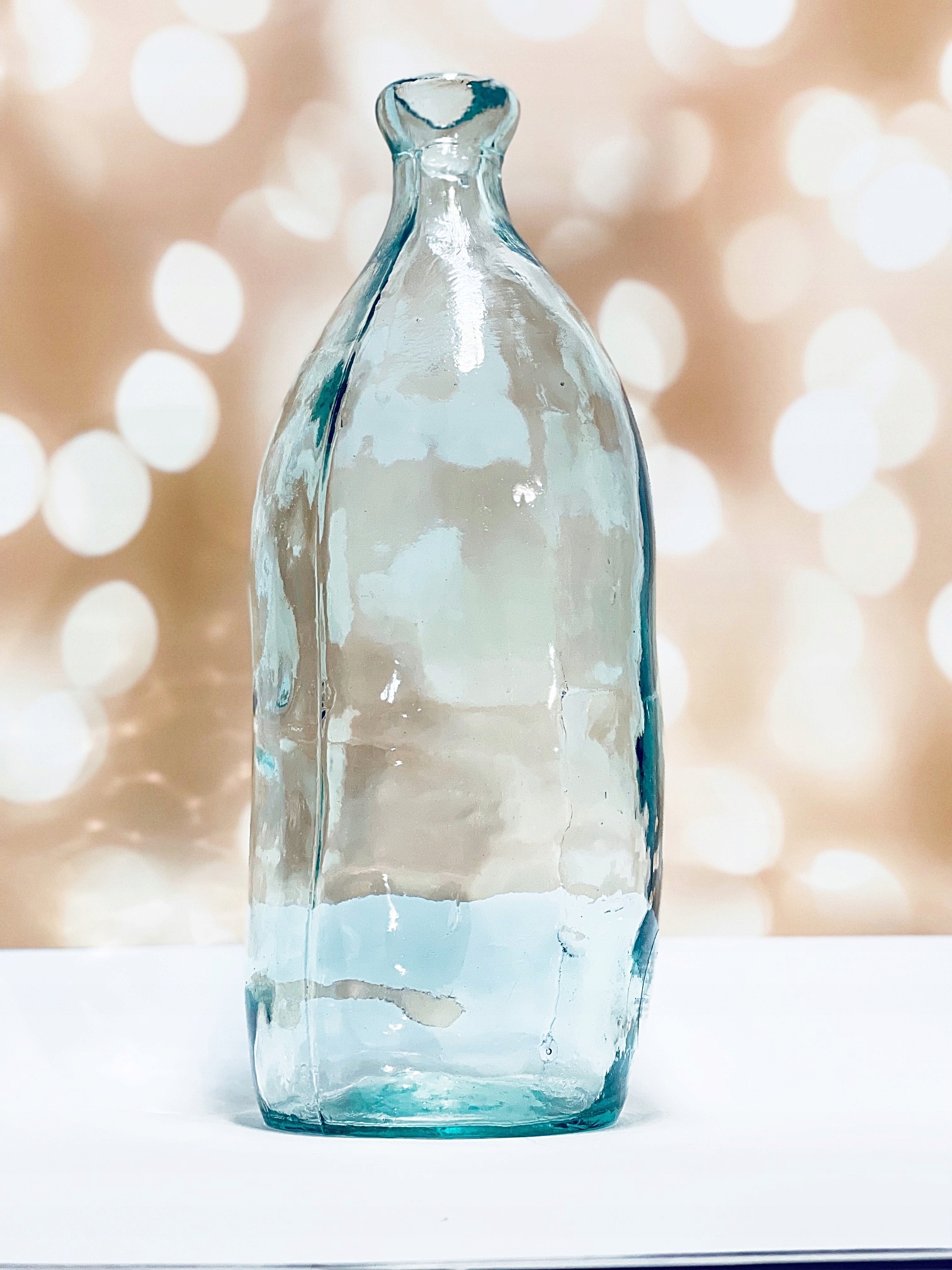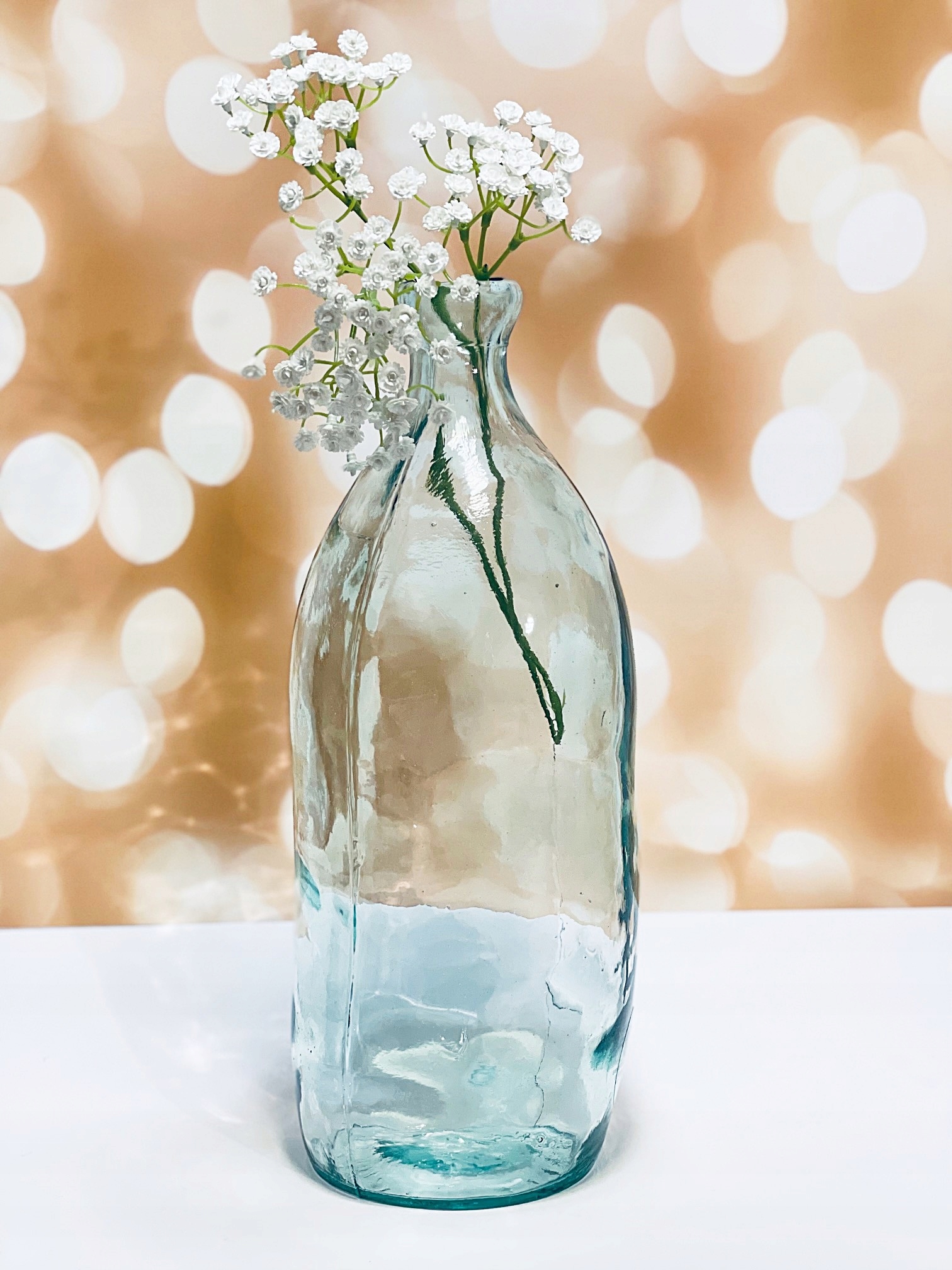 Ручная работа – это не что иное, как вещи, сделанные вручную. Каждая ваза индивидуальна. Эта красивая стеклянная ваза изготовлена из толстого стекла, соединенного вручную из двух частей, поэтому стыки видны по бокам. На стекле могут быть видны царапины меньшего или большего размера, а также пузырьки воздуха. Благодаря форме вазы в ней прекрасно будет смотреться одиночный цветок или веточка. Он прекрасен и без содержимого, сам по себе является современным украшением. Он прекрасно отражается на свету.