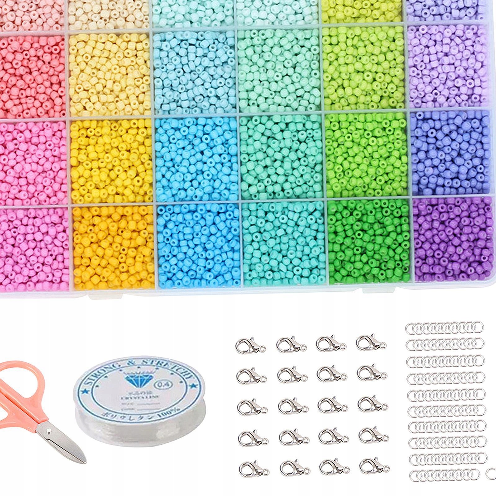 Размер: 24 цвета, с фурнитурой, 3 мм, около 12000 шт., Размер коробки 19,5смх14смх2,3см, диаметр бусин 3мм