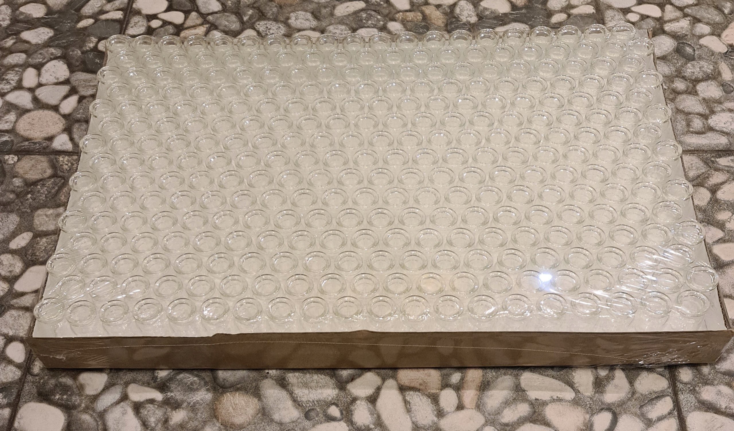 - Набор стеклянных бутылок с пробками, надежно упакованных в коробку.