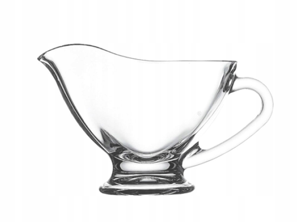 Стеклянная кастрюль красиво представлена на высокой ноге. У него есть удобное ухо. Сделано брендом Pasabahce.