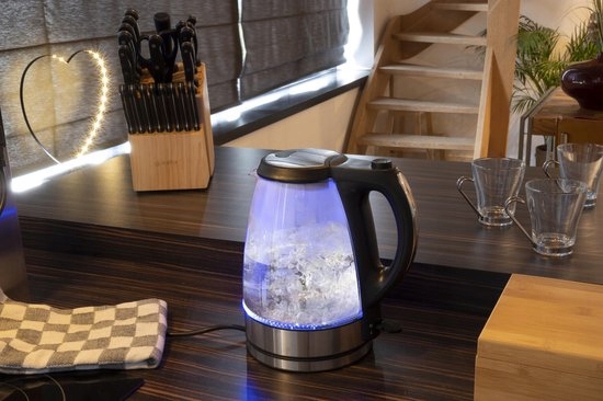 Этот беспроводной стеклянный чайник будет отлично смотреться на вашей кухне. Чайник в основном прозрачный, с деталями из нержавеющей стали и черного пластика. Устойчивое к царапинам высококачественное стекло делает чайник практичным.