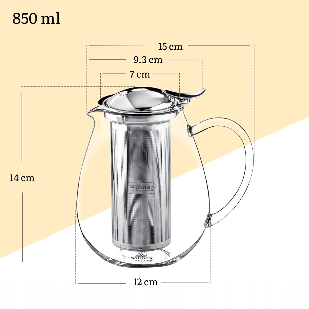 Скляний глечик для чаю і трав, металева заварка Wilmax 0,85 л