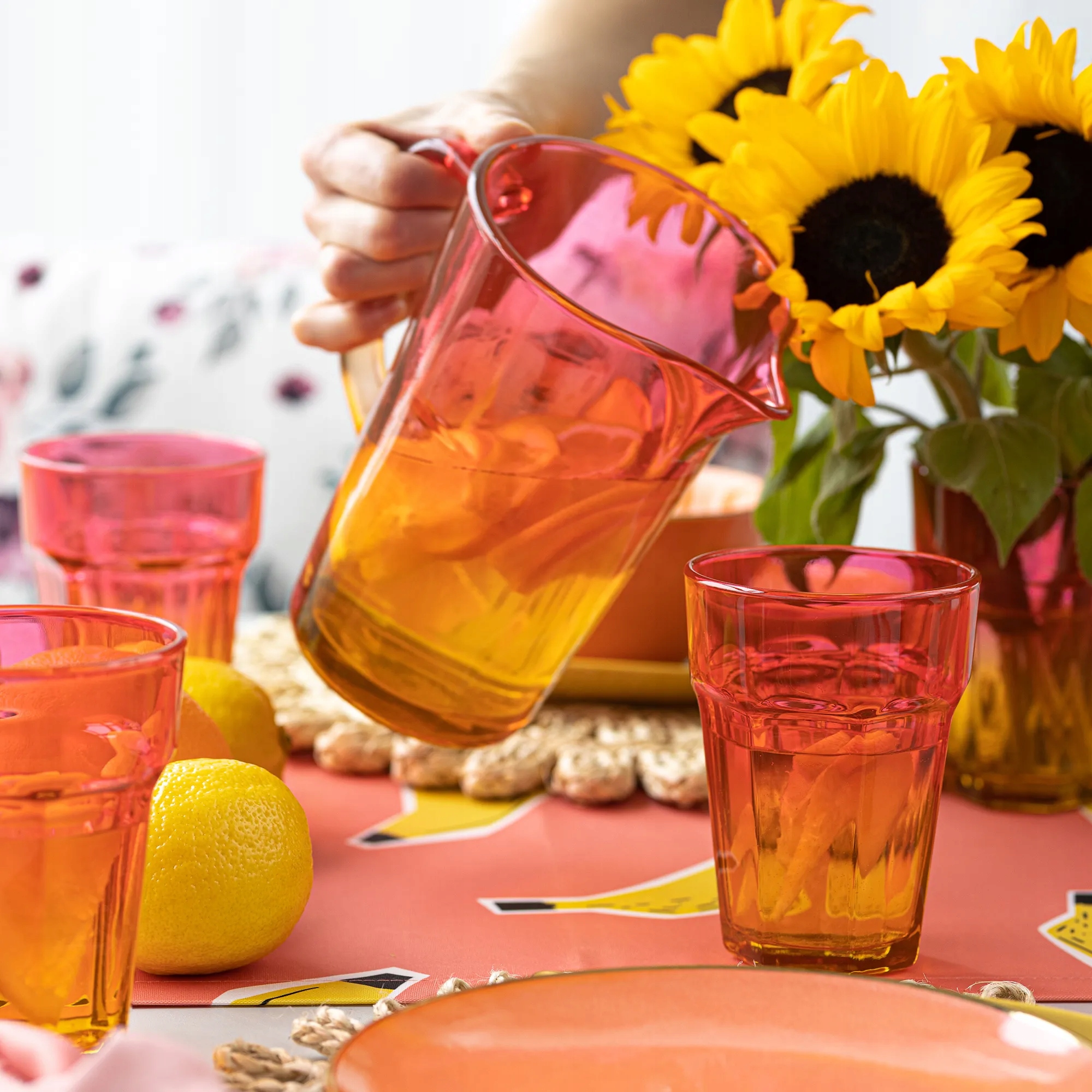 Если вы ищете практичный и стильный сосуд для подачи любимых напитков, то кувшин Gigi с ручкой – идеальный выбор! Его емкость, 1230 мл, позволяет долго наслаждаться освежающим напитком, а изготовление из прочного толстого стекла делает его прочным и поддерживает нужную температуру напитка. Кувшин Gigi идеально подходит для подачи воды с лимоном и мятой, лимонада, соков и других напитков. Красочный кувшин Gigi также станет идеальным украшением вечеринок и праздников дома или в саду. Гости непременно оценят прохладительные напитки, поданные в стильной обстановке. Оттенки оранжевого и розового оживят ваше пространство и наверняка понравятся детям!