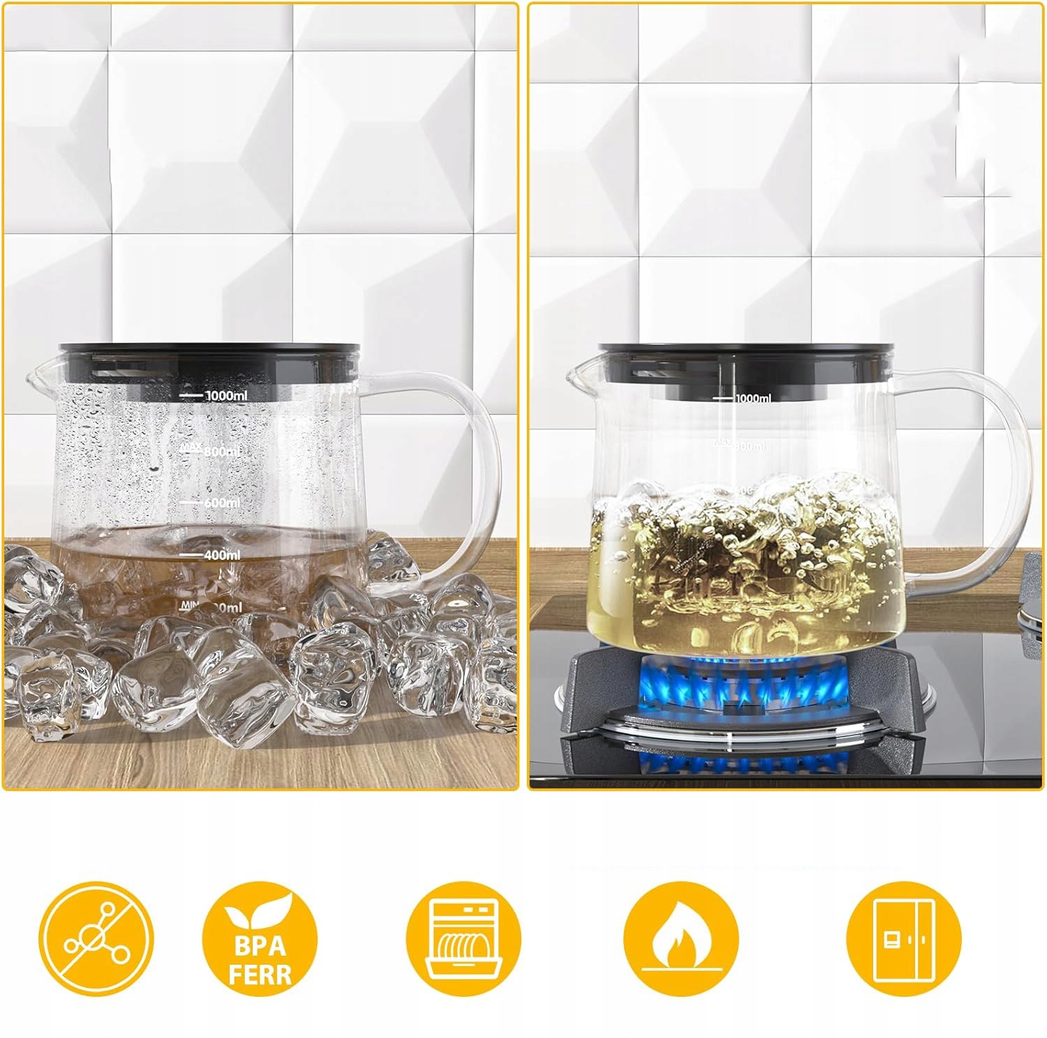 🍃🍃【Высокотемпературный стеклянный чайник】Наш стеклянный чайник специально оснащен сливом без капель и эргономичной ручкой. Перед использованием его необходимо установить. Этот стеклянный чайник устойчив к высоким температурам и может выдерживать температуру от -20 до 150 ℃, его можно использовать в микроволновой печи и плите. При использовании в микроволновой печи рекомендуется снимать металлическую часть.