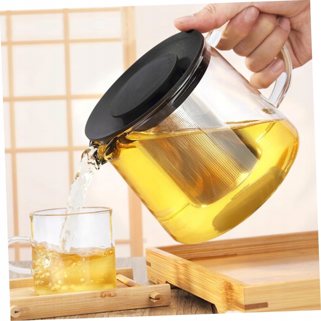 СТЕКЛЯННЫЙ КУВШИН С СИТОМ, ЧАЙНИК ОБЪЕМОМ 1000 МЛ, СТАЛЬНОЙ СЪЕМНЫЙ СИТРО