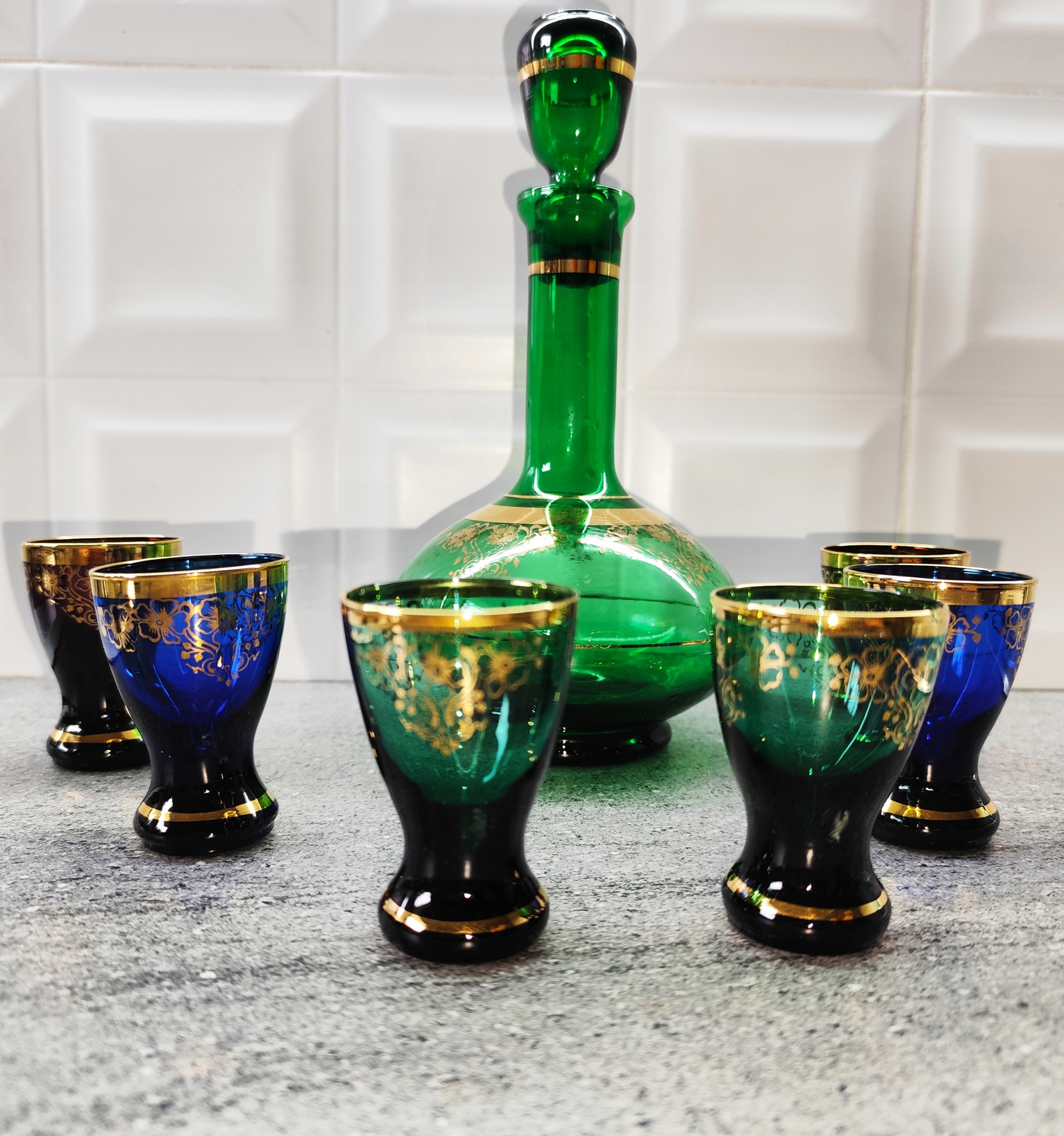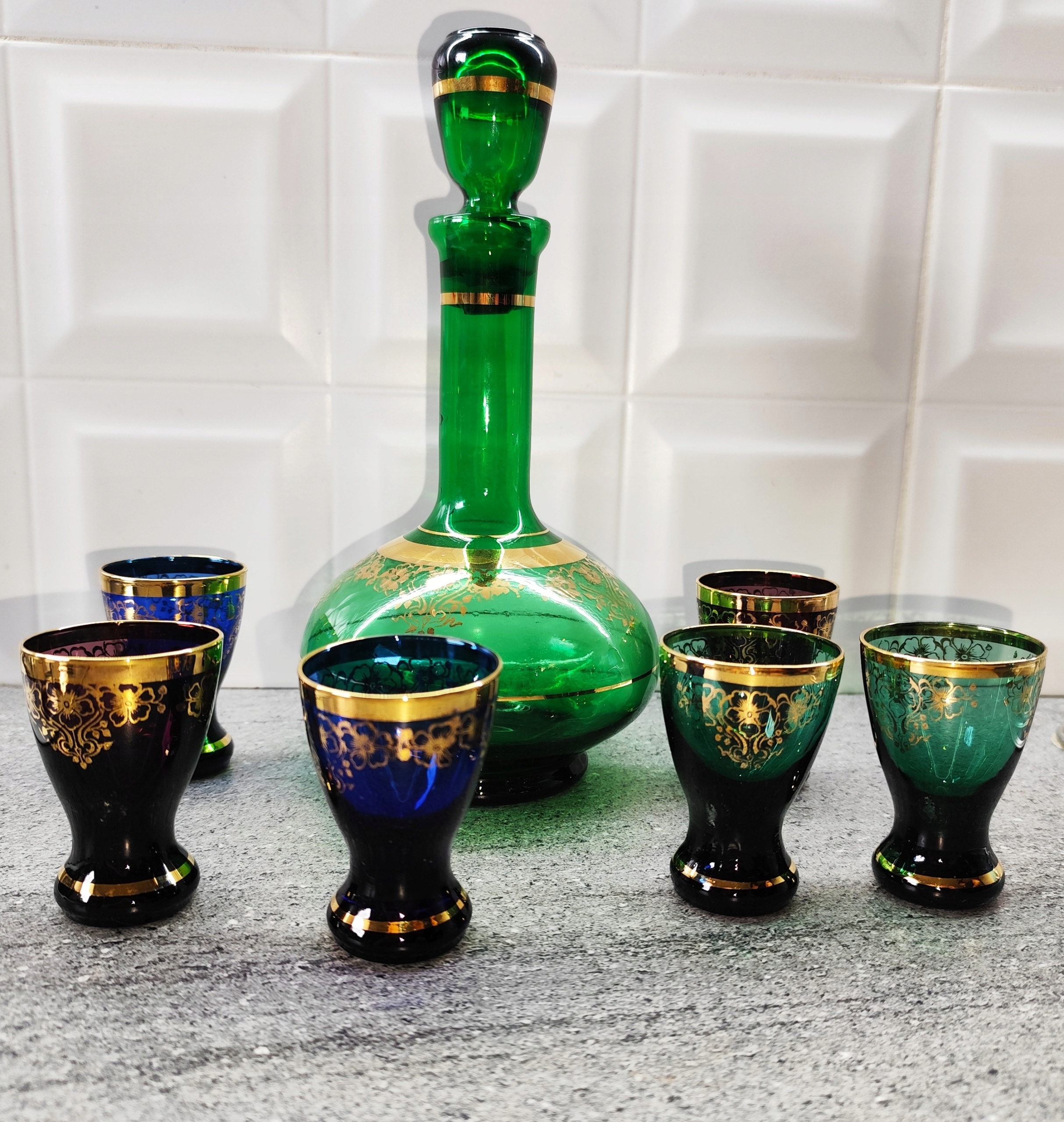 Стеклянный графин со стаканами, набор зелёных стеклянных графинов + бесплатно