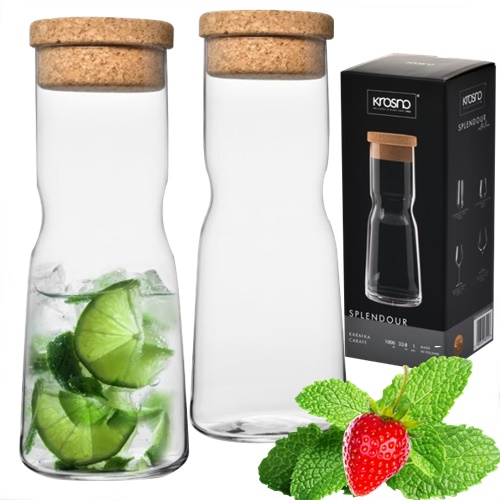 емкость 1000 мл предлагает достаточно воды, чтобы удовлетворить ваших гостей или всю семью, без необходимости часто заполнять блюдо. Уникальное закрытие из натуральной пробки не только добавляет очарование, но и защищает содержание карафа от нежелательных ароматов. Кроме того, заглушка проста в использовании и гарантирует длинную свежесть напитка.