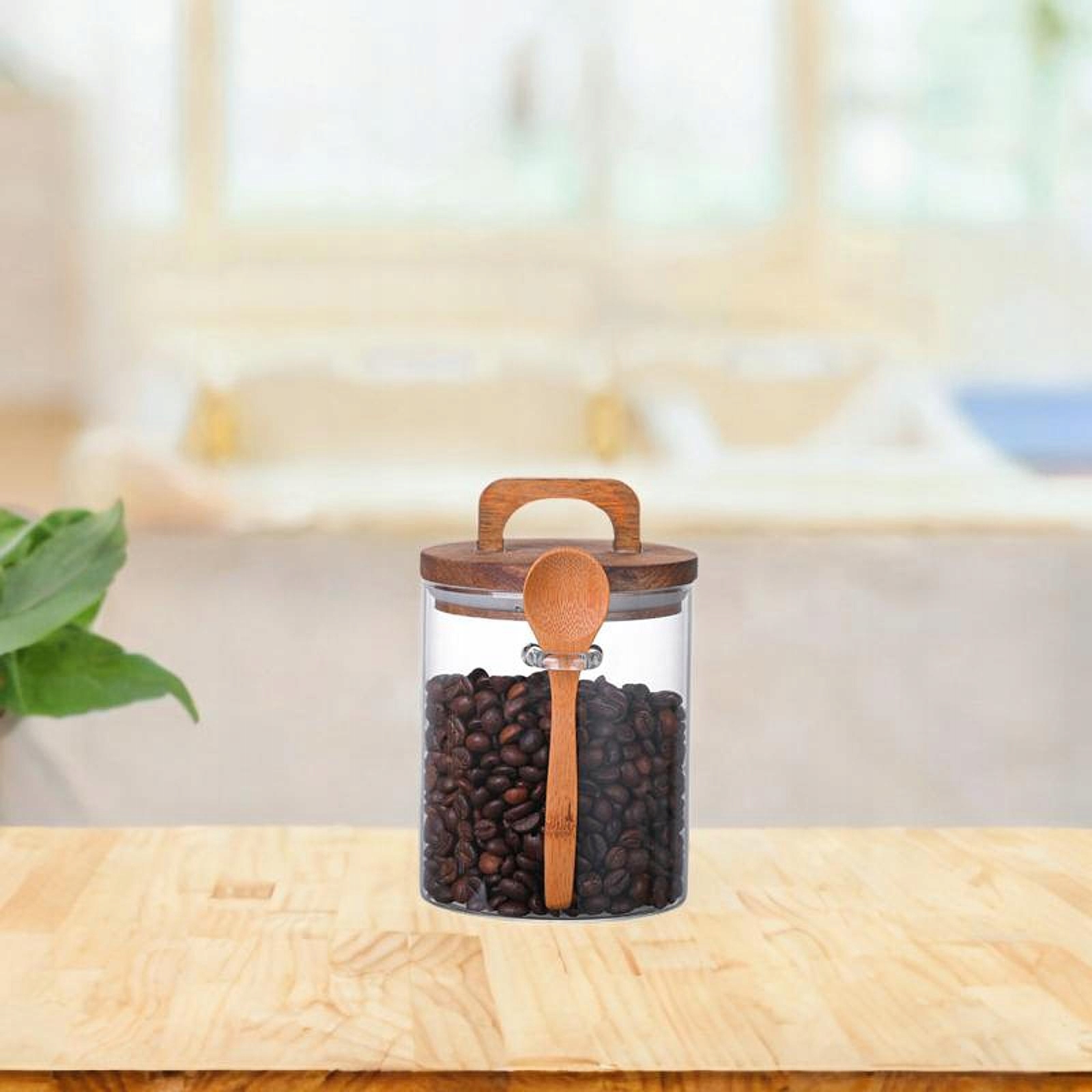 Скляний контейнер для солі та ложка з герметичною кришкою для зберігання кавових зерен 800 мл