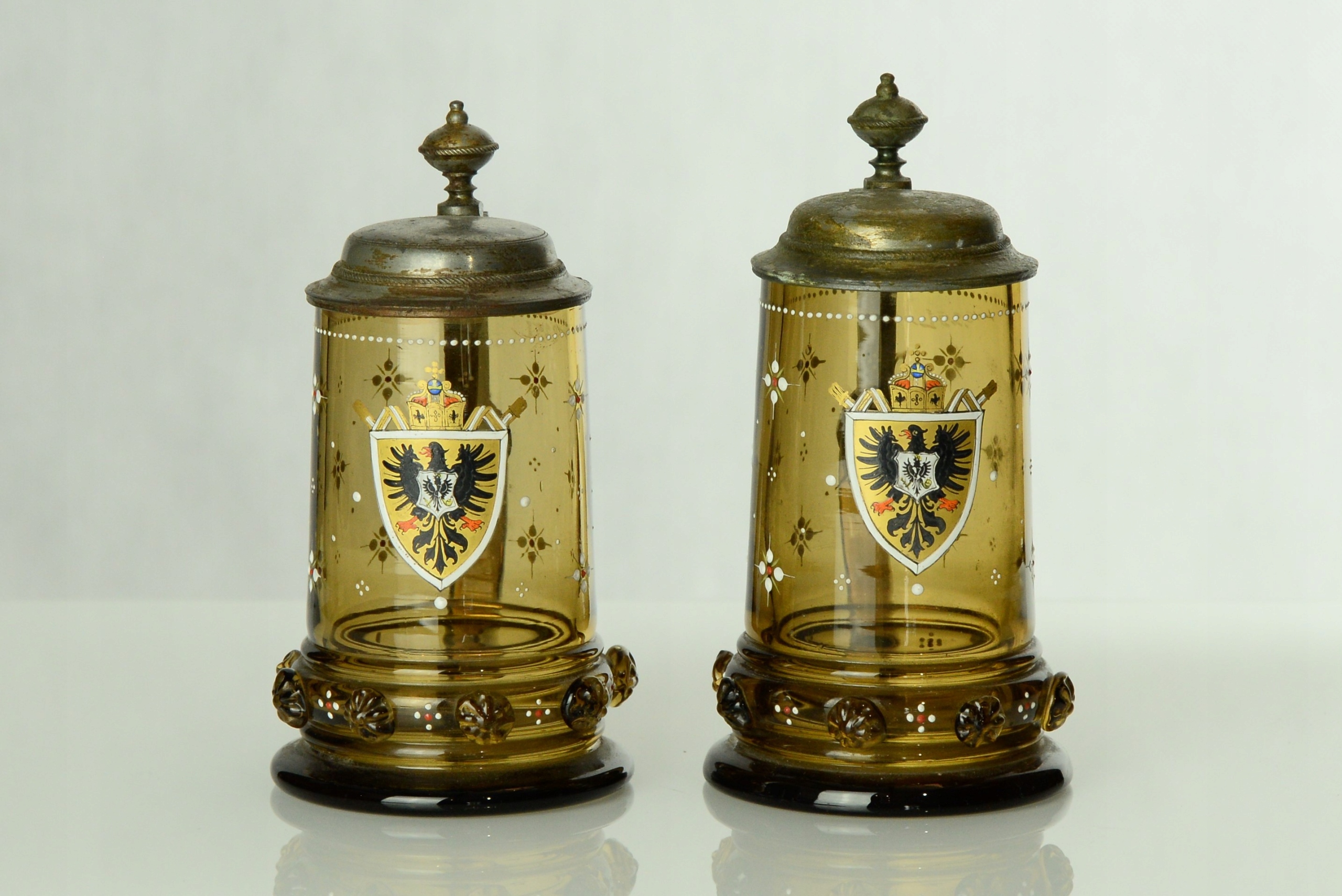 - зеленое стекло красивой формы, украшенное стеклянными «малинами» в нижней части и эмалированными узорами, в центральная часть - расписной имперский орел.