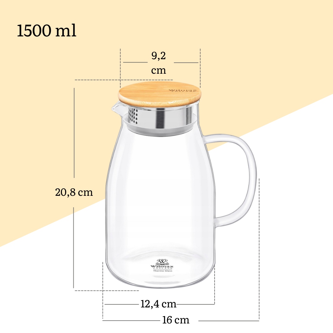Стеклянный кувшин с бамбуковой крышкой, 1,5л