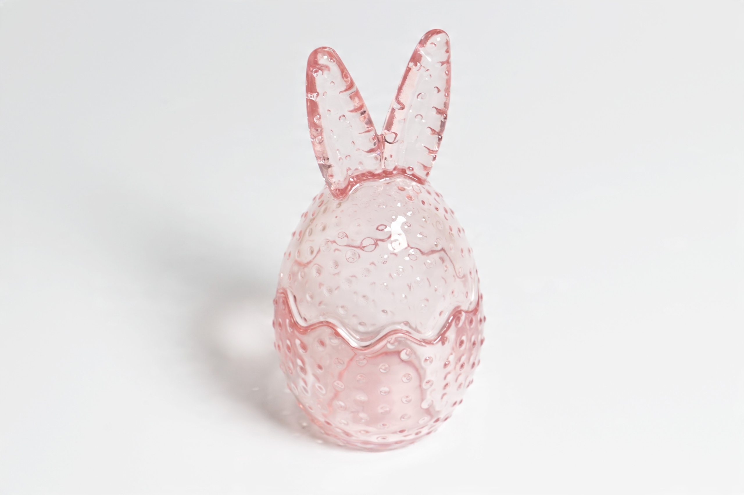 Стеклянный розовый контейнер с ушами