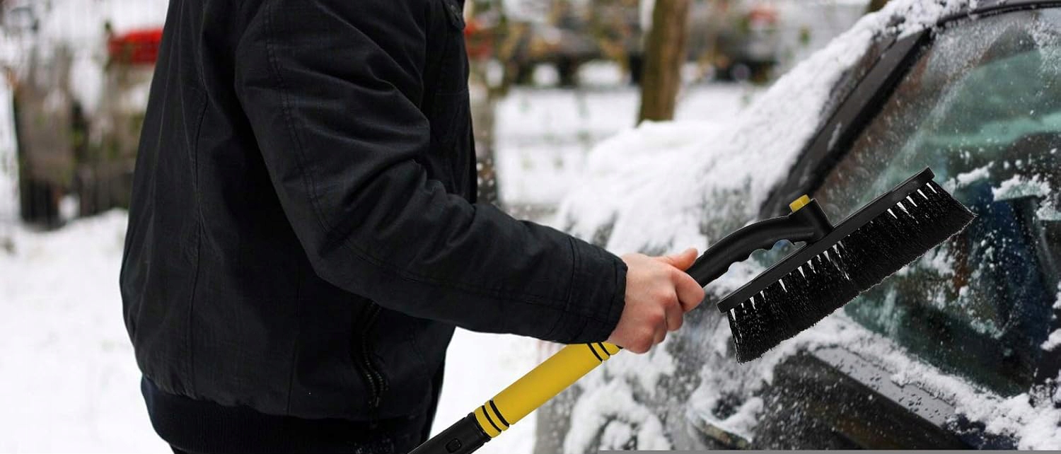 Наша щетка для снега. Благодаря этому вы можете легко добраться до едва доступных мест, таких как крыша автомобиля.