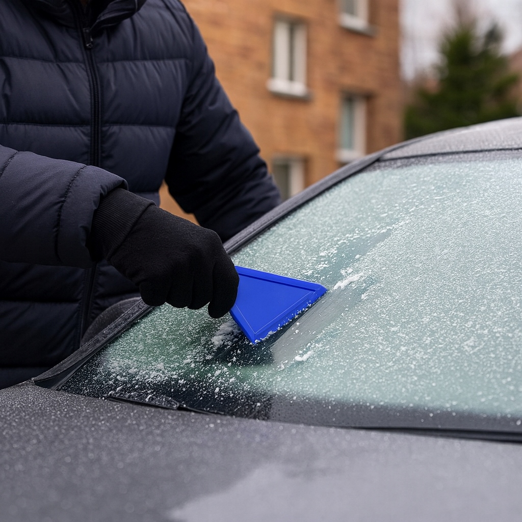 ✅ Скребок для стекол автомобиля - треугольный, синий, зубчатый