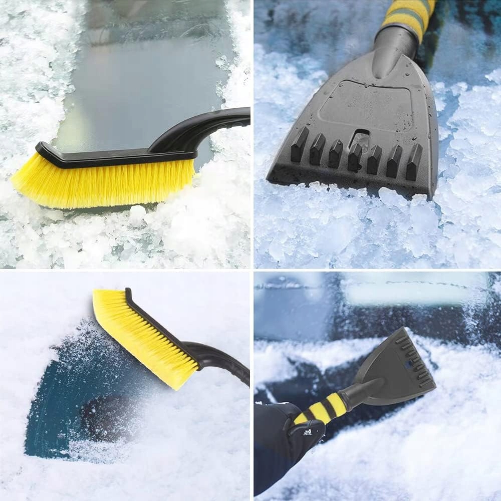 - Стеклянный скребок с щеткой имеет размеры 67 см/26 дюймов, что увеличивает ваш автомобиль. Снег 37,5 см и ледяной скребок 34,5 см, легче хранить под передними сиденьями или боковым хранением.