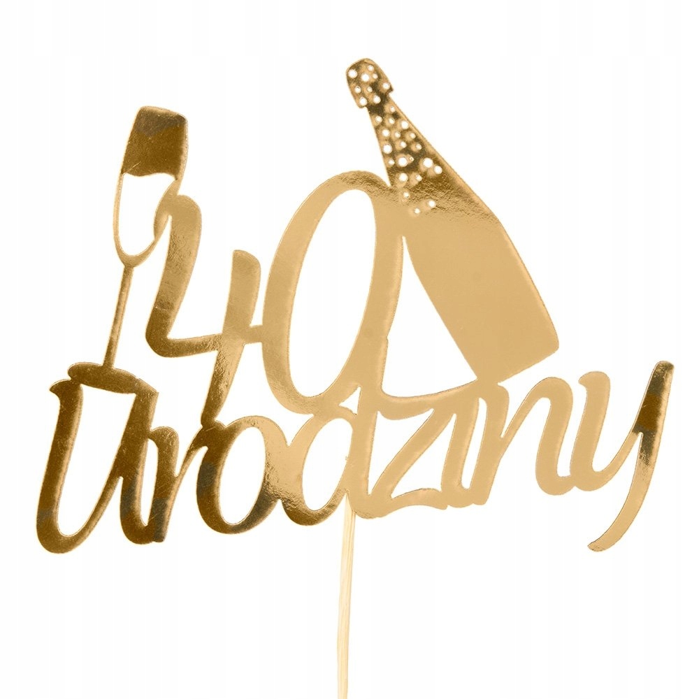 СТЕКЛЯННЫЙ ТОПЕР с надписью 40 ЗОЛОТОЙ ДЕНЬ РОЖДЕНИЯ на торте