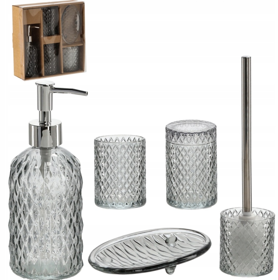 Набор ванной комнаты представляет собой современный и очень удобный элемент ванной комнаты. Это определенно обязательно должно быть в вашем доме. В этом замечательном 5-элементном пакете буквально все, что вам нужно для ванной комнаты. Набор был создан для всех, кто ценит элегантность в сочетании с простотой и комфортом. Сплошные, стабильные, простые в использовании, а также не занимают много места, сделанного из высококачественного стекла.