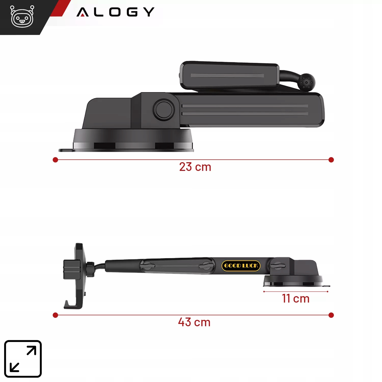 ▶️ Автомобильный держатель телефона 7,2 дюйма для грузовика, автобуса, грузового автомобиля, экскаватора, легкового автомобиля, длинный 43 см для стекла, кабина alogy, Черный