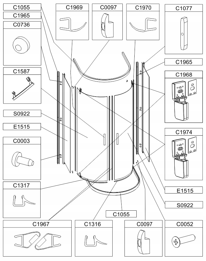 Держатель окна для полукруглой кабины Sanplast 660-C0097