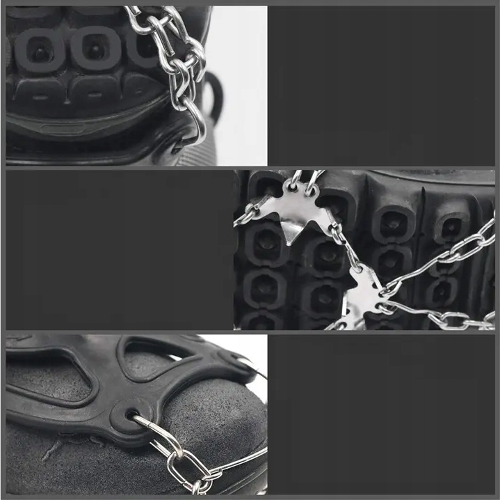 Применяется на: наклонной местности, льду, грязной дороге, мокрой траве, скользких, опасных и невысоких участках тропы. Они также подходят для бега, походов подледной рыбалки и тому подобного
