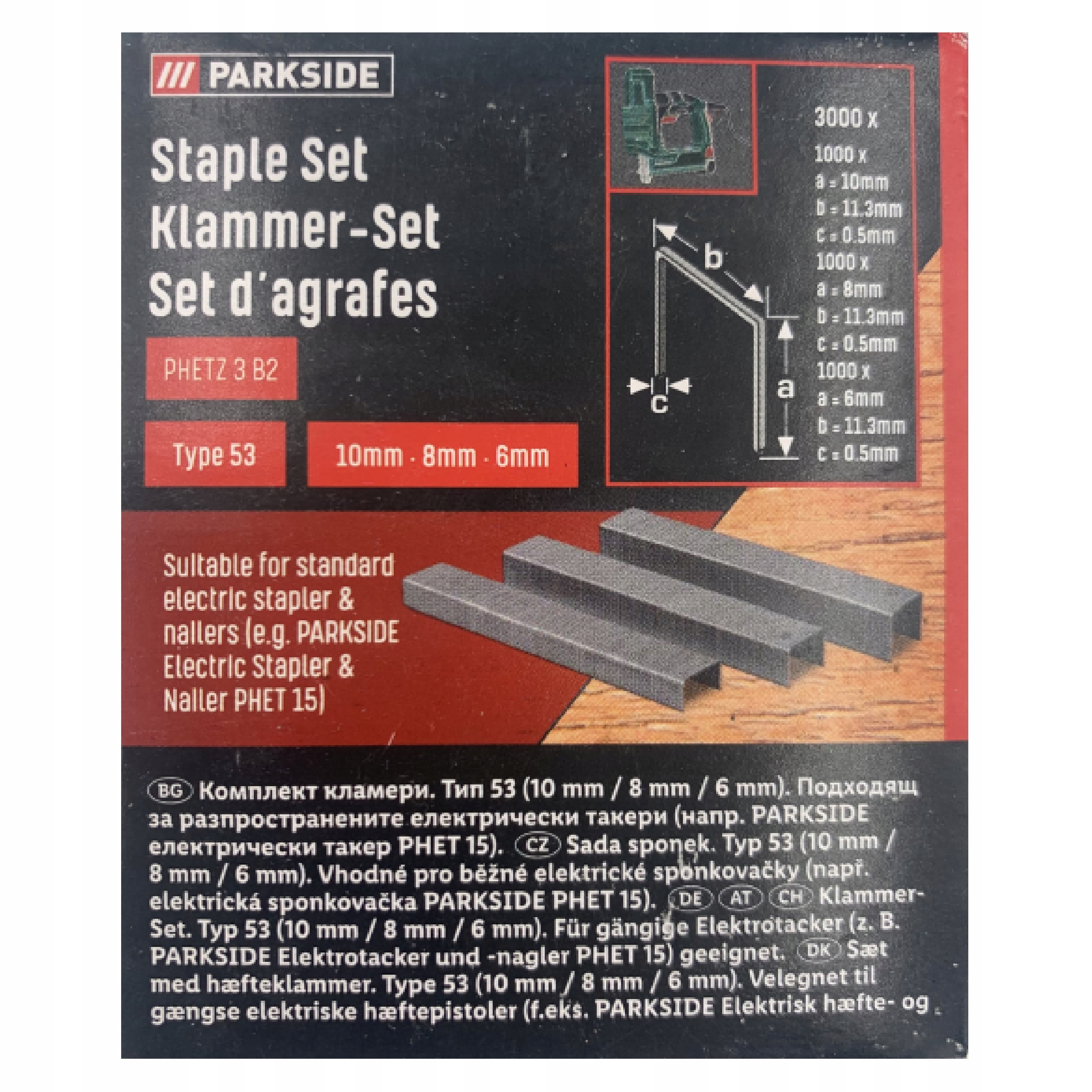Скобы ТИП 53 для Parkside PAT 4 D5, длиной 10, 8 и 6 мм, по 1000 шт, т.е. всего 3000 шт