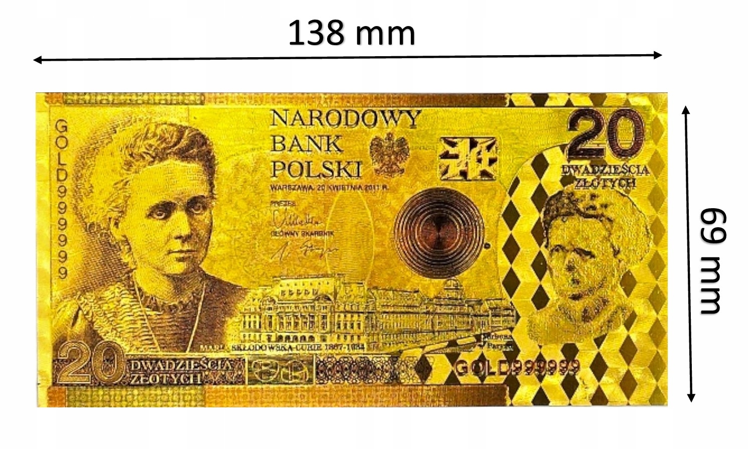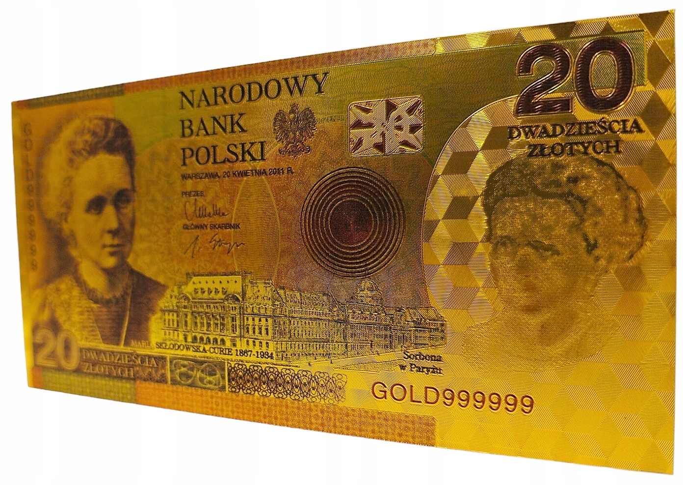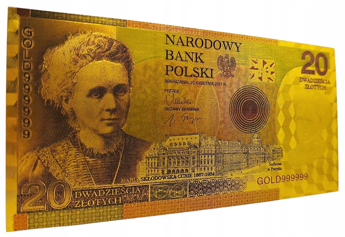 позолоченная банкнота 20 Zlotys maria sklodowska curie h1>
