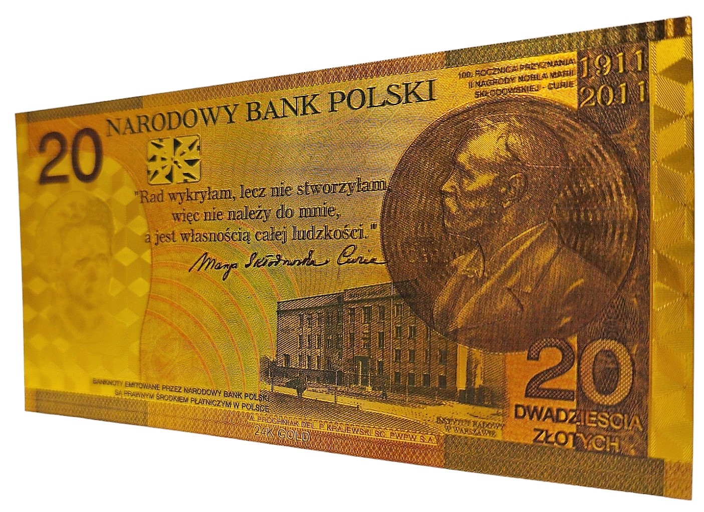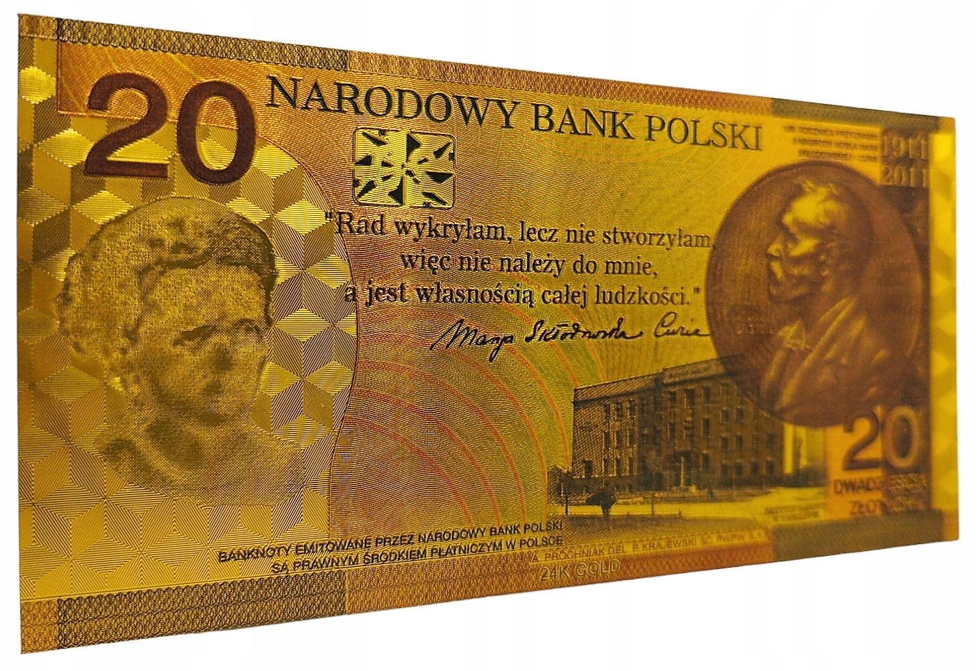 Skłodowska curie pln 20 Золотая банкнота коллекция
