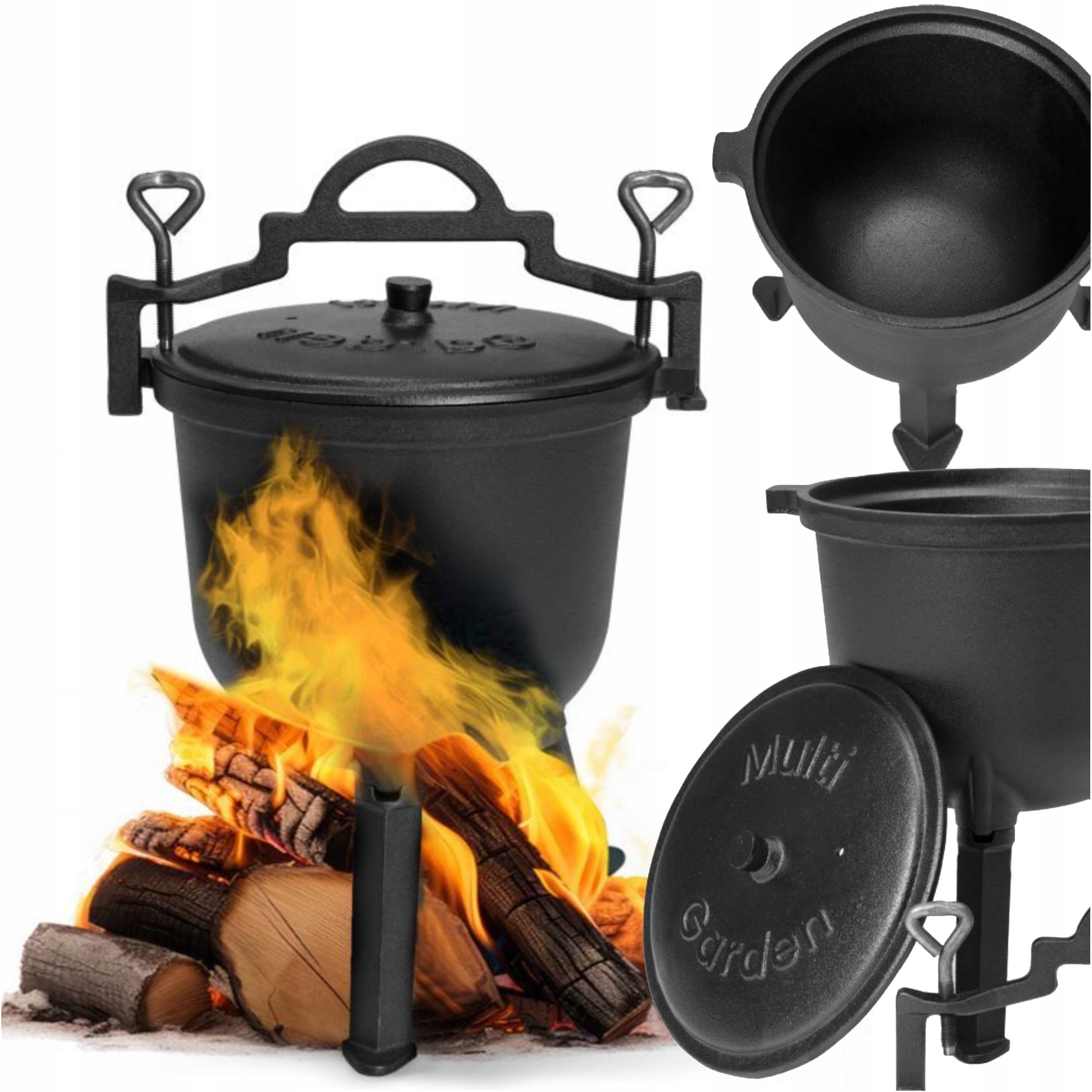 чугунный кольс , но и на подпожи, но и на открытом воздухе, но не подходит для подготовки к открытию. дом. Он обеспечит уникальный вкус и уникальные кулинарные переживания, а последующие мероприятия на свежем воздухе получат уникальную атмосферу. Котлы идеально проводят тепло, что заставляет блюда равномерно готовиться - как раз вовремя, чтобы длинное тушеное мясо, приготовление и выпекание .Функциональность и детали