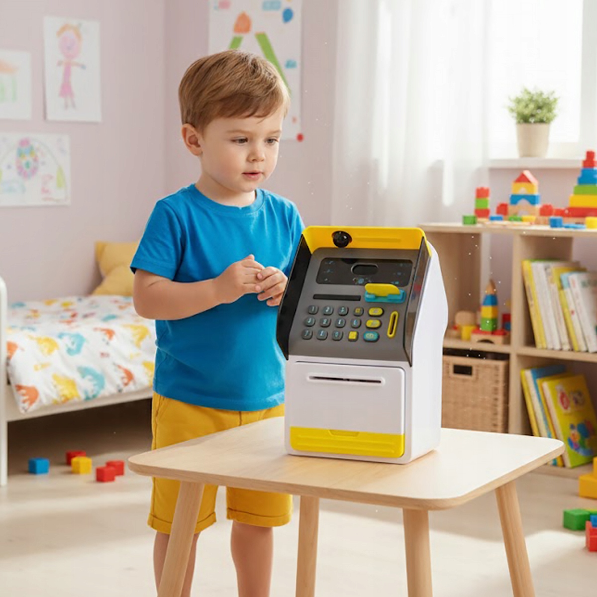 Электронный банкомат-сейф-копилка с PIN-паролем для банкнот и монет, чтобы научиться экономить